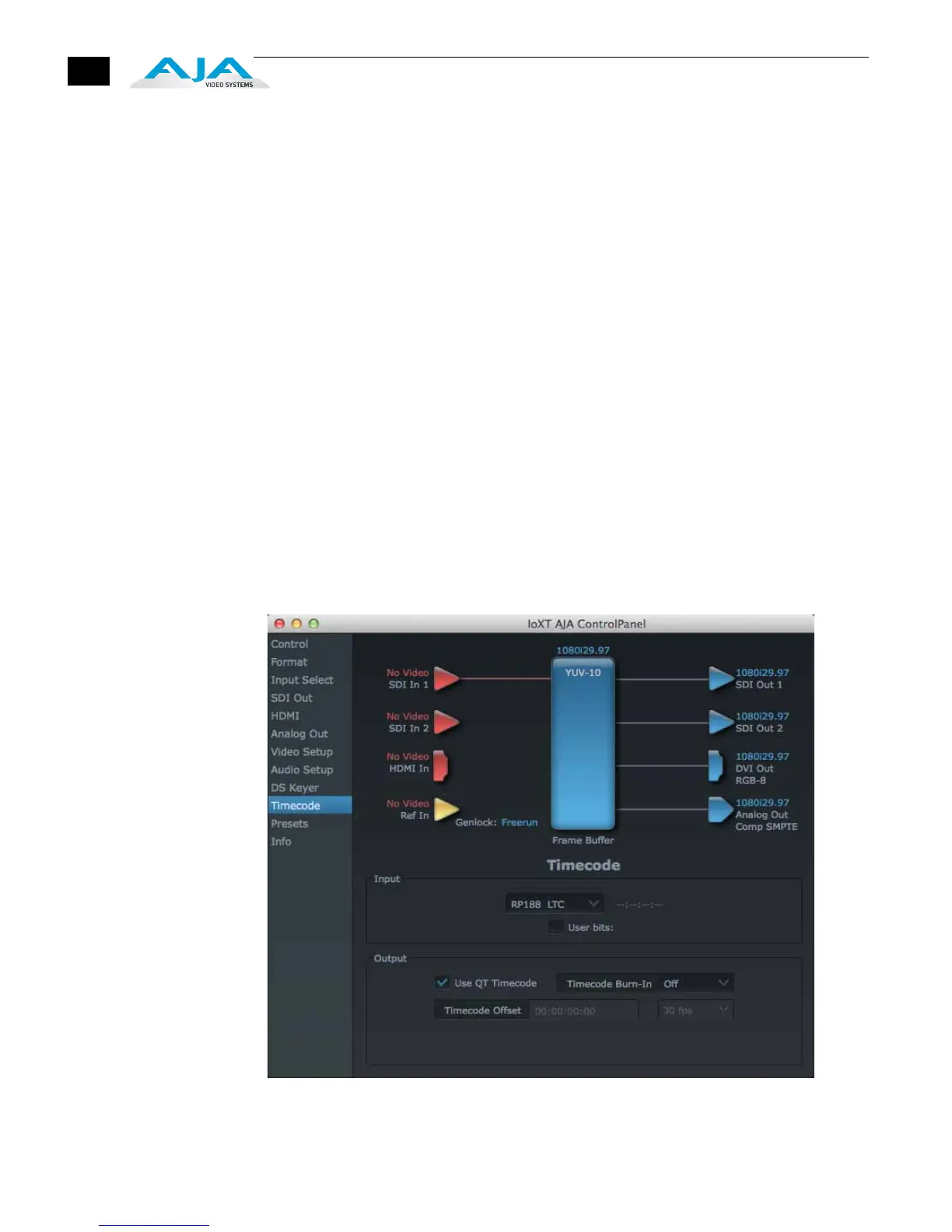 Timecode Screen The timecode screen is used for both monitoring the RP-188 timecode embedded in
