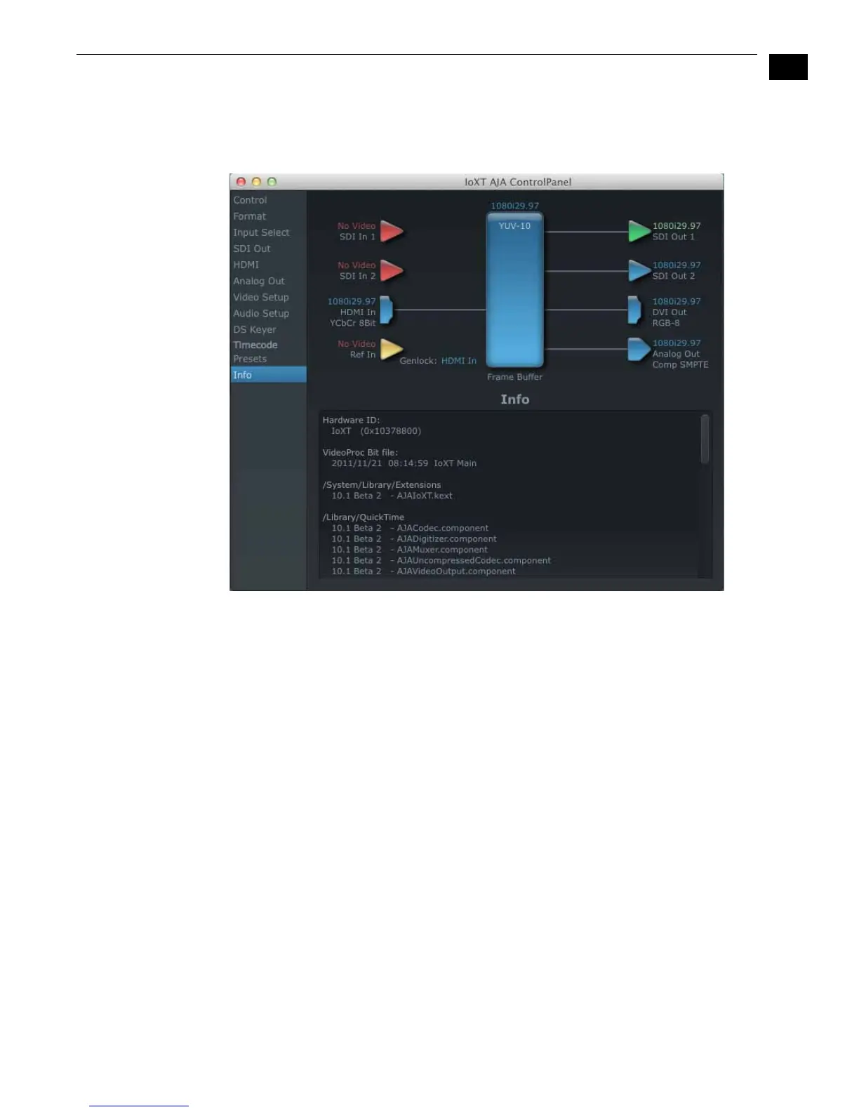 Info Tab Screen This Tabbed screen shows the Io XT software files that have been installed on your