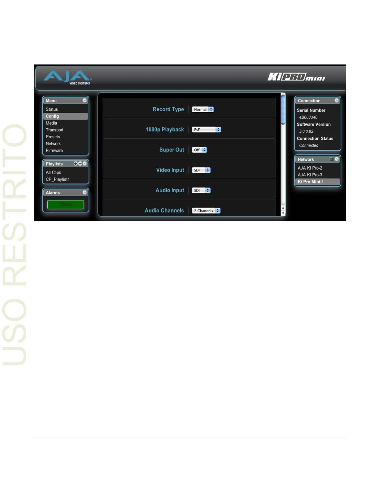 Figure 17. Ki Pro Mini Web Interface, Config Screen