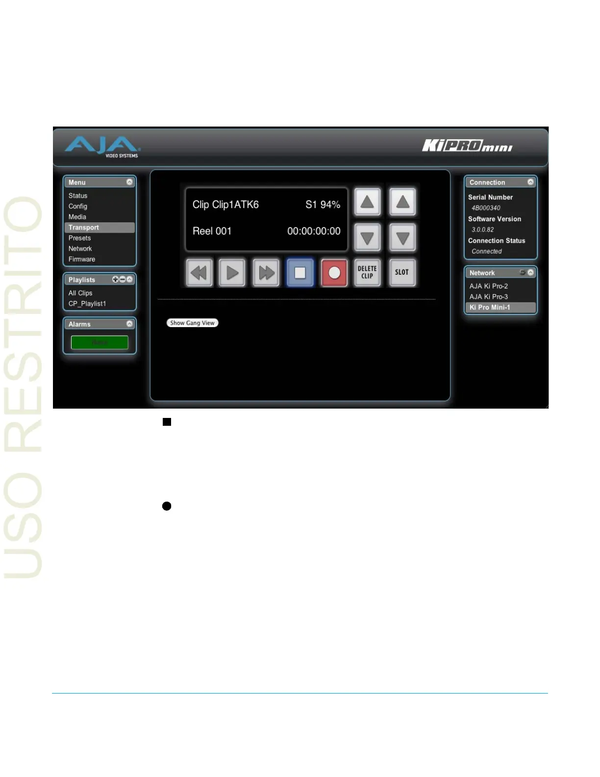 Figure 19. Ki Pro Mini Web Interface, Transport Screen