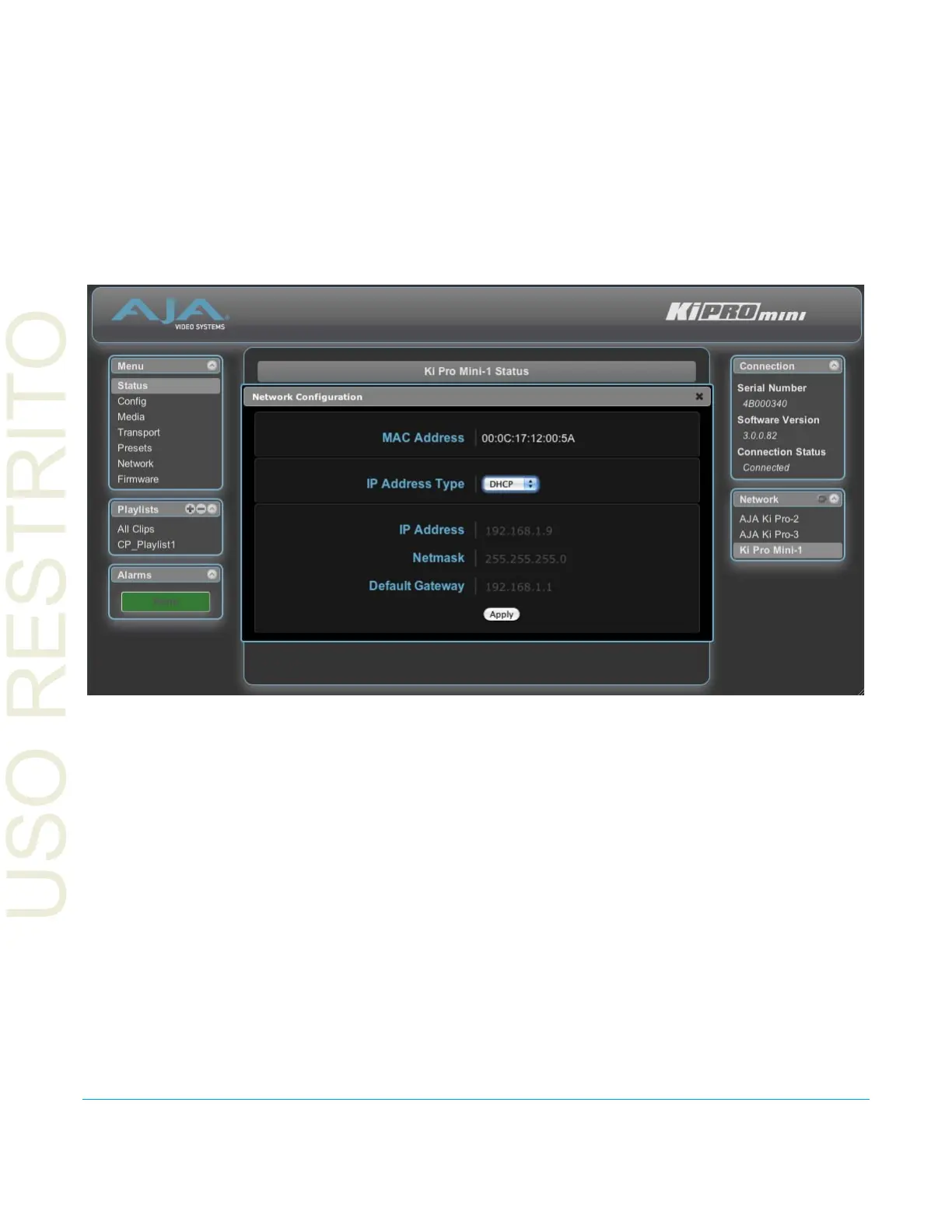 click the “Apply” button to update Ki Pro Mini with the IP address entered here.