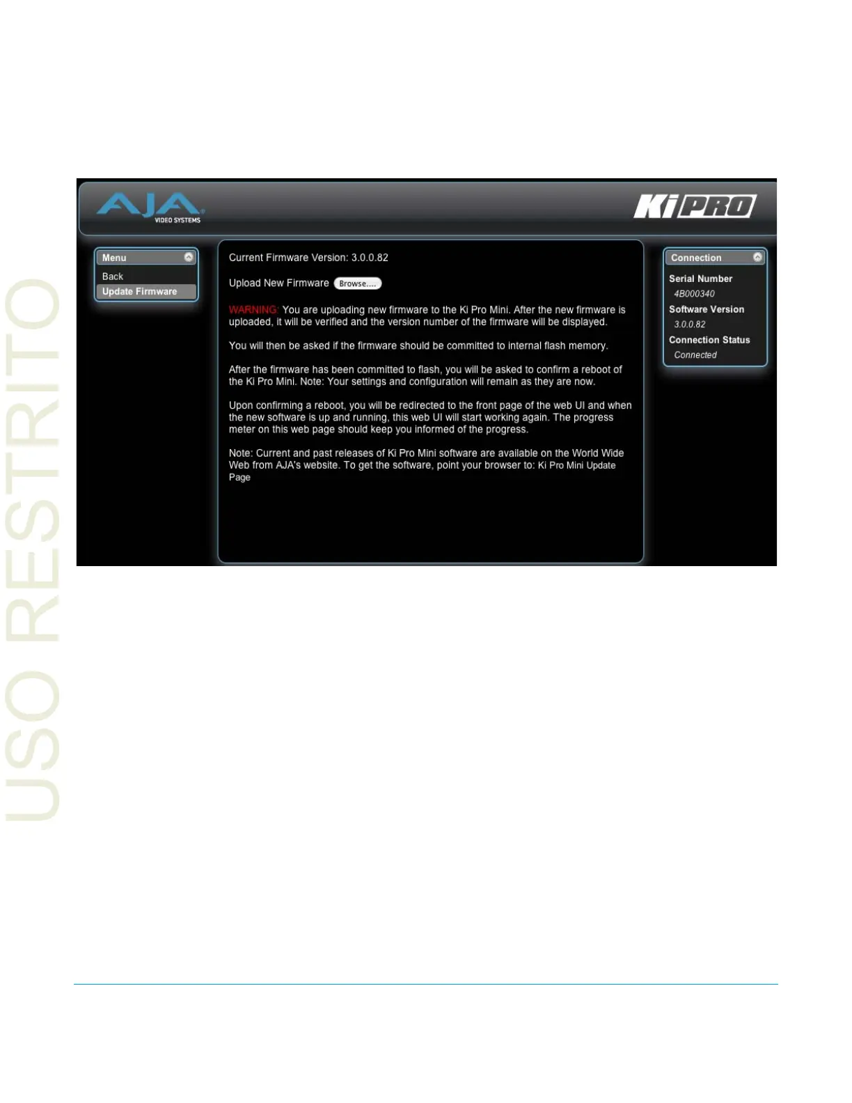 Figure 26. Ki Pro Mini Web Interface, Update Firmware Screen