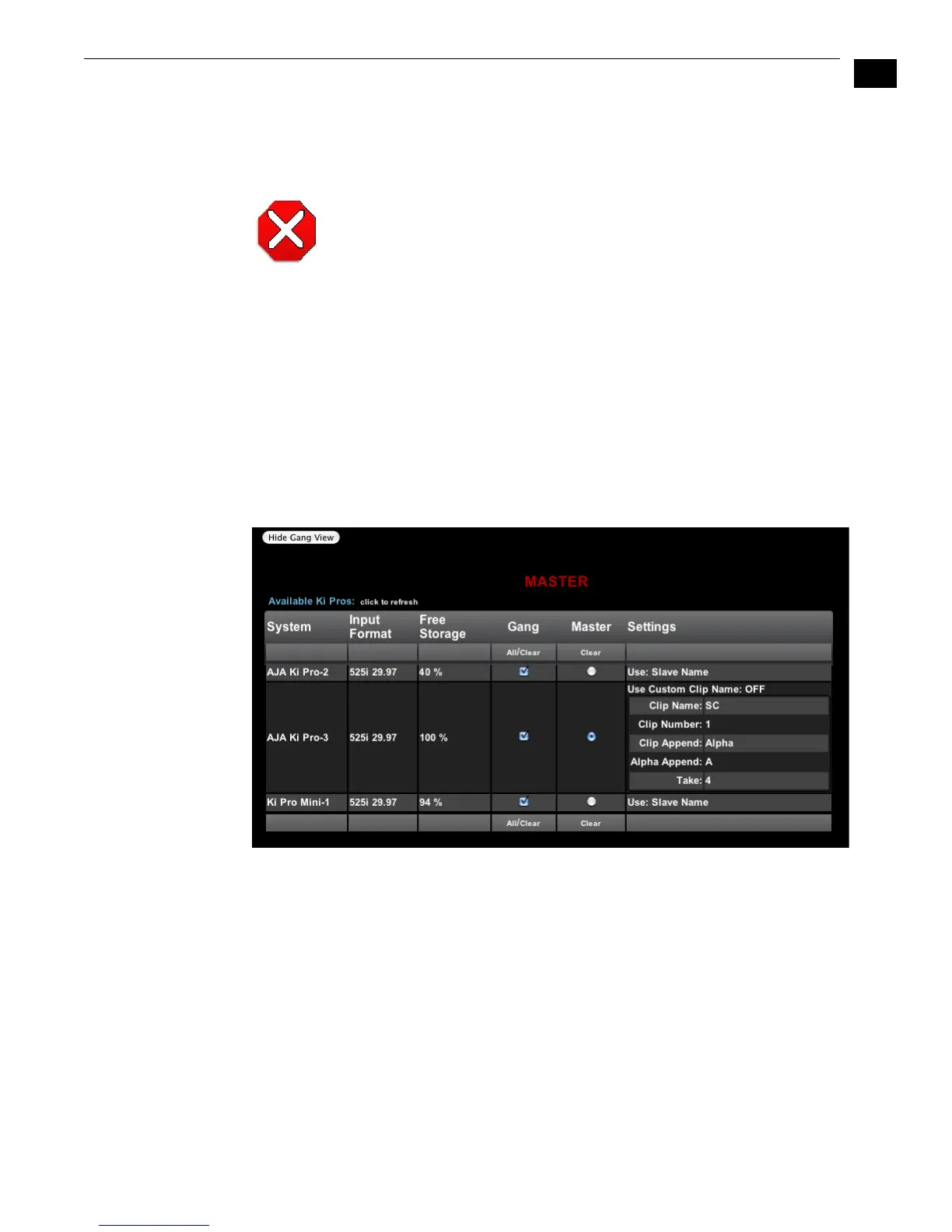 controls for controlling multiple Ki Pros. See “Gang Recording” on page 102 at the