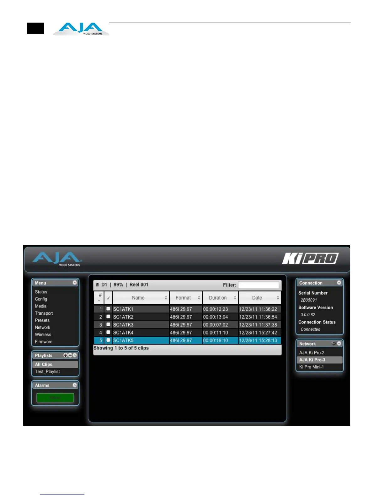 Ki Pro Web Interface, Clips Screen