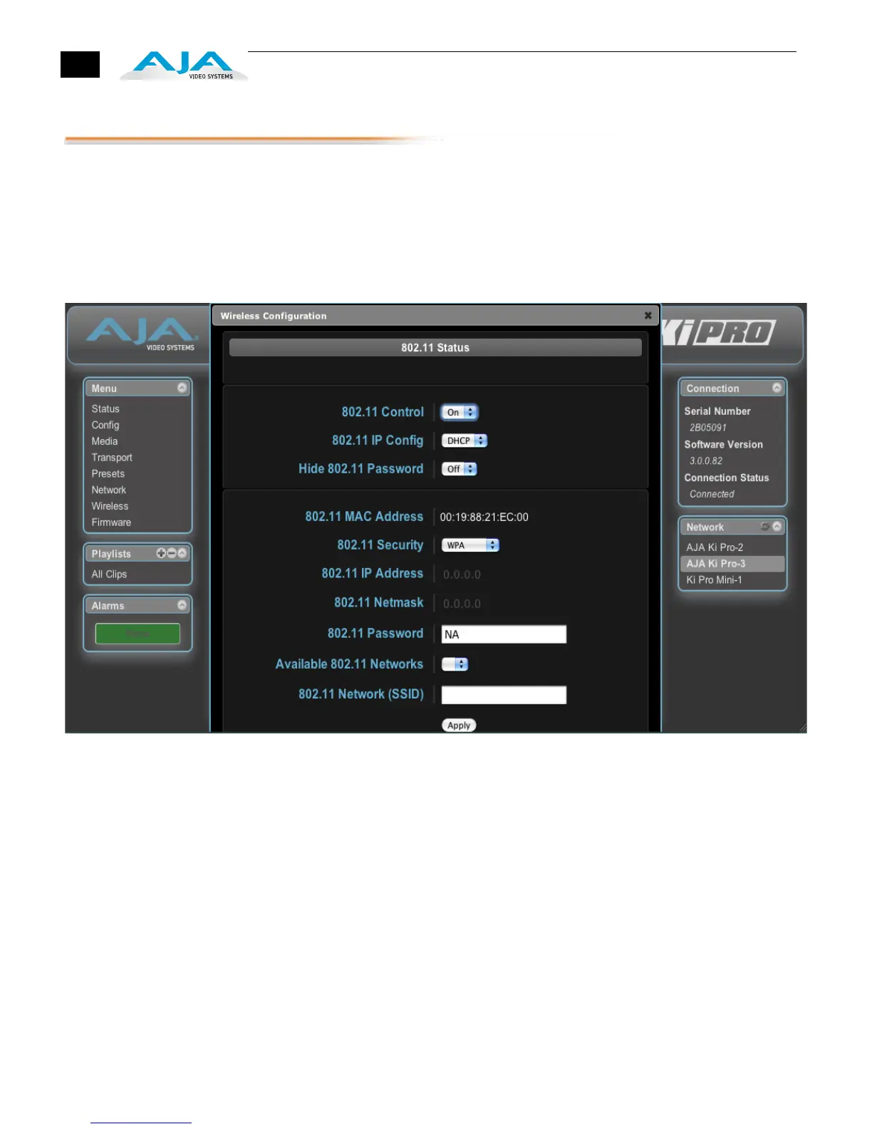 Ki Pro Web Interface, Wireless Configuration Screen