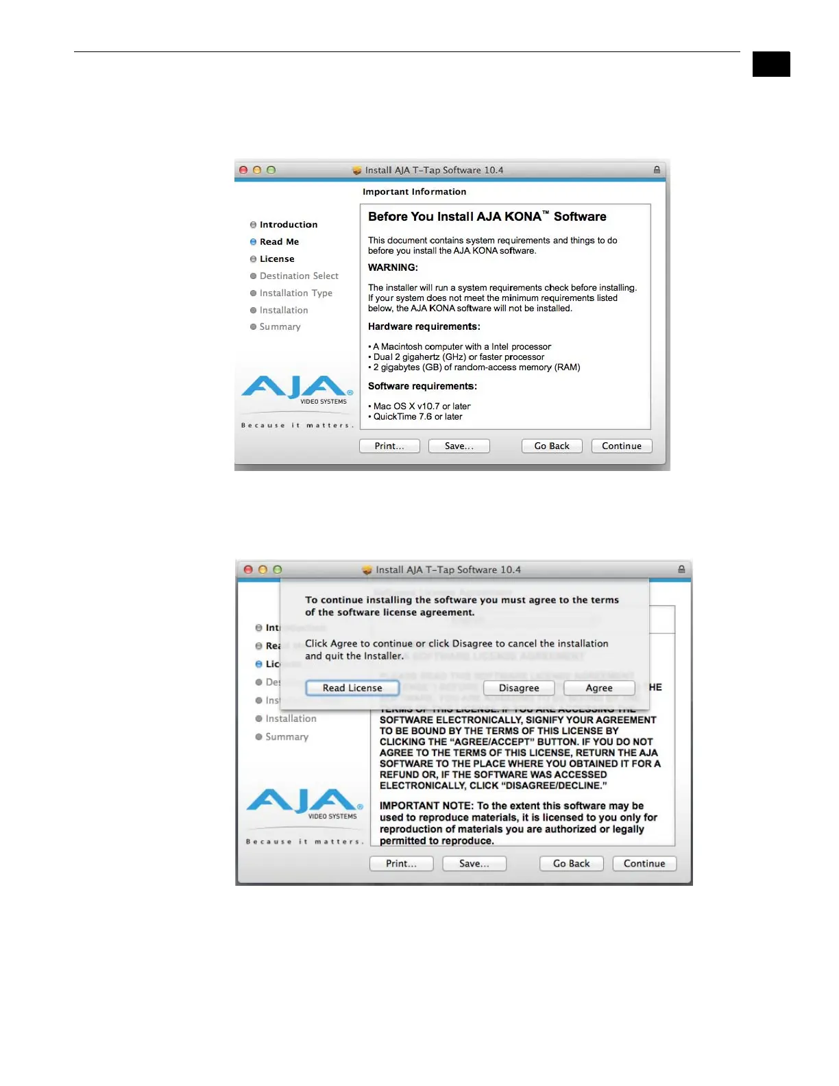 10.Read and click Continue, then click the Agree button to accept the Software License