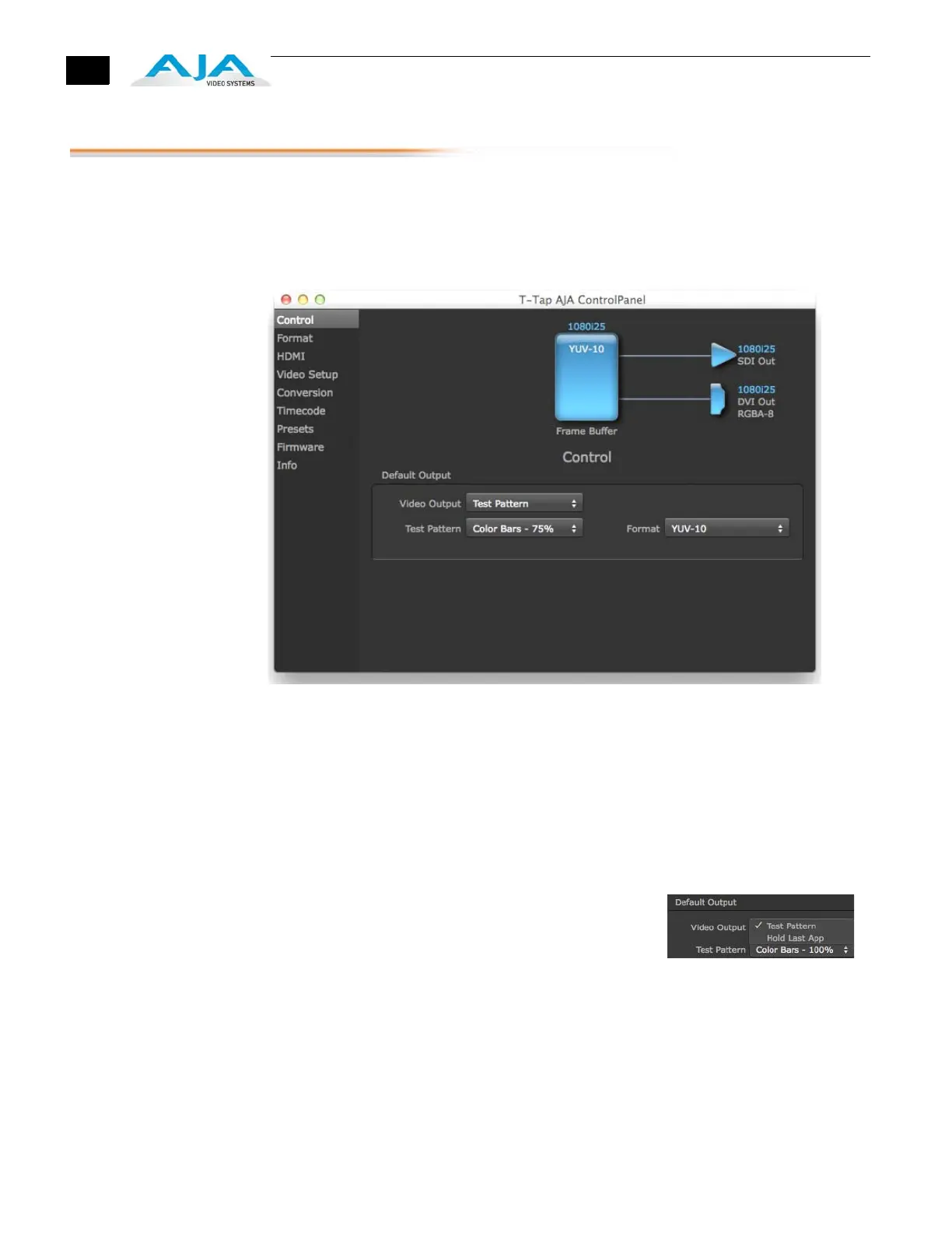 AJA Control Panel, Control Screen
