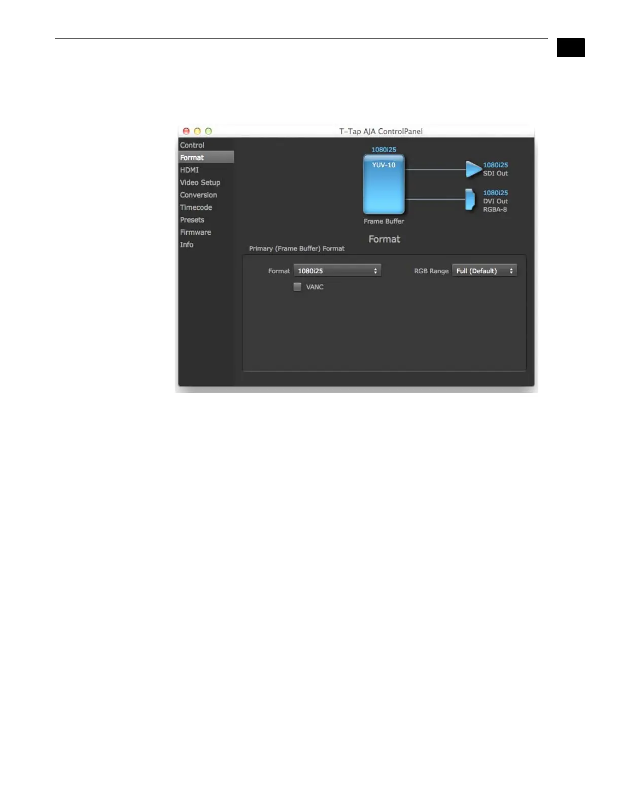 format used by T-TAP's framebuffer. When a change is made via the Video Format pull-