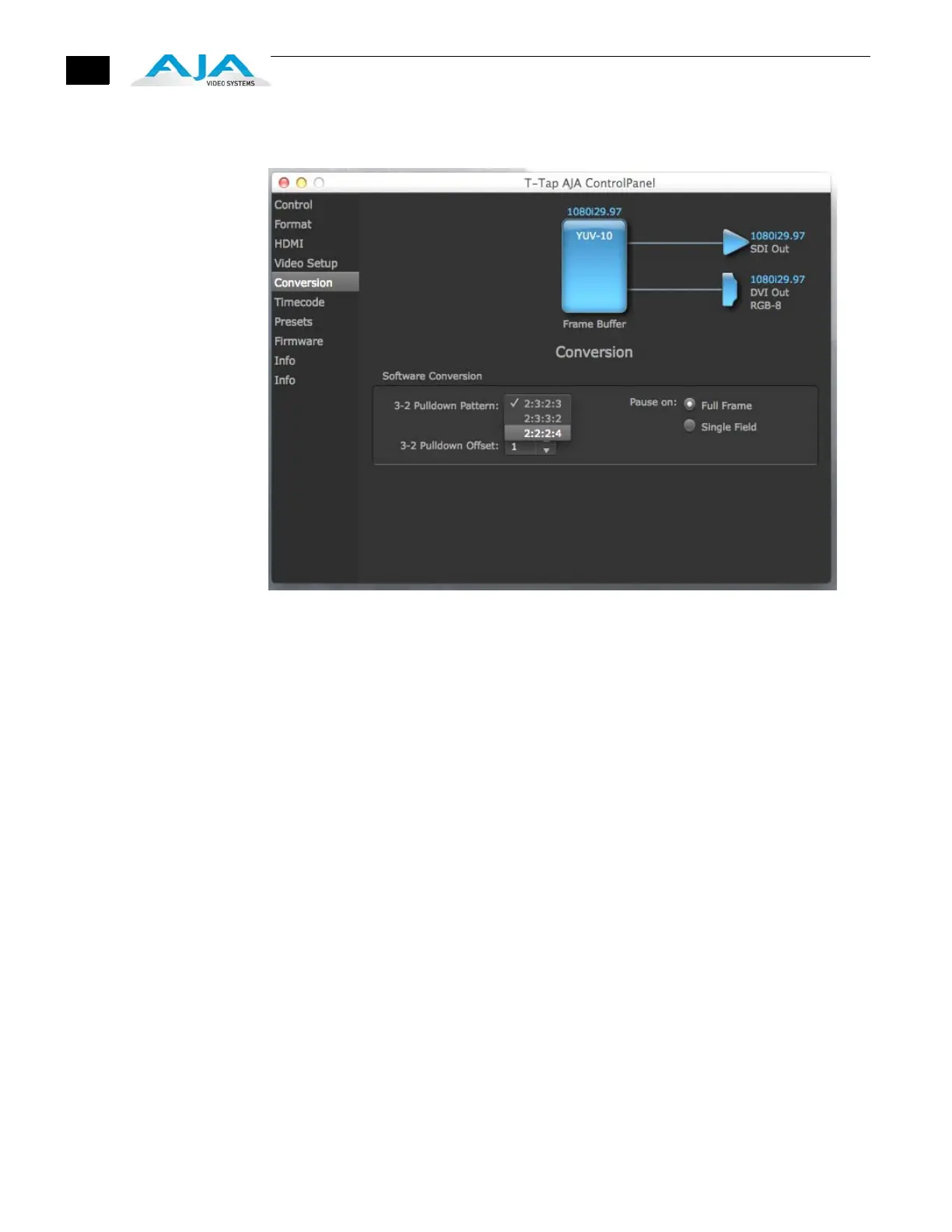 AJA Control Panel, Conversion Screen