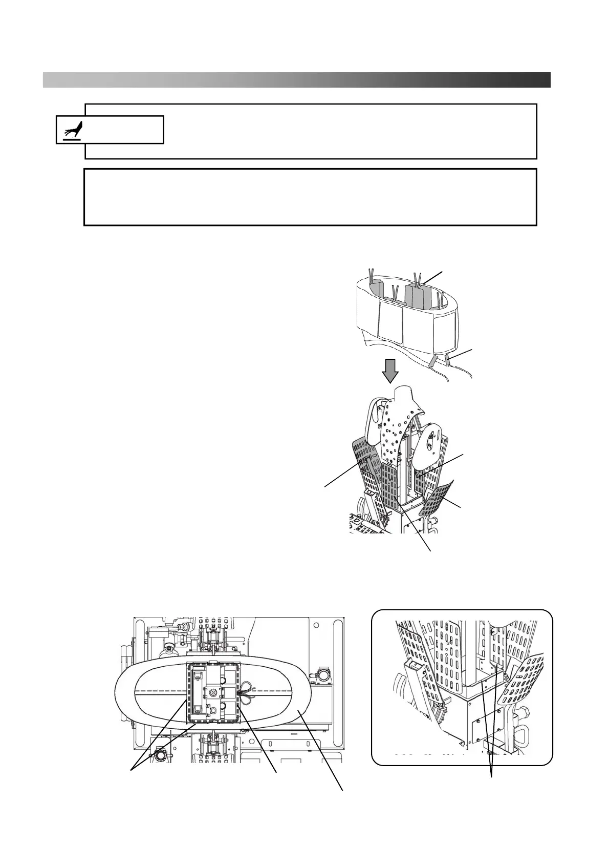 (3) Pull strings which are attached on bottom of Lower Body Cover under the metal fitting and tie