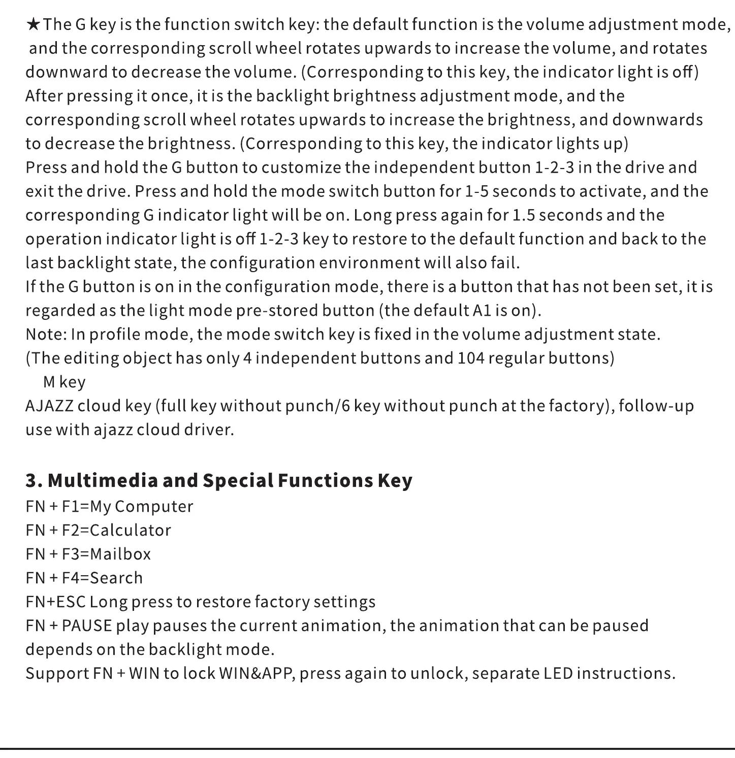 *The G key is the function switch key: the default function is the volume adjustment mode,