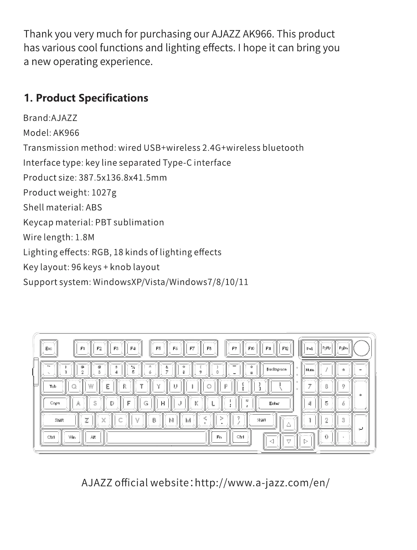 Thank you very much for purchasing our AJAZZ AK966. This product