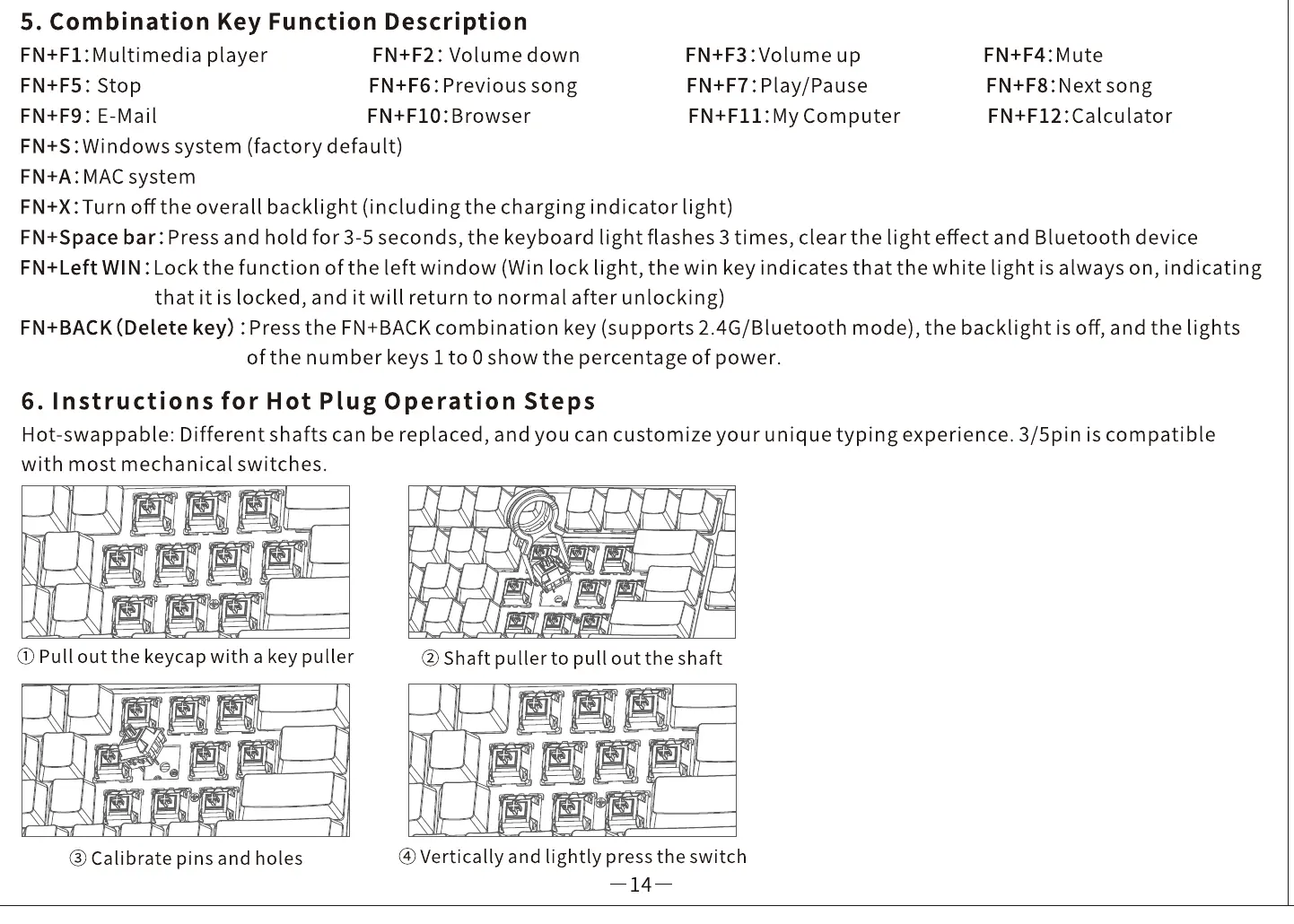 Hot-swappable: Different shafts can be replaced, and you can customize your unique typing experience. 3/5pin is compatible