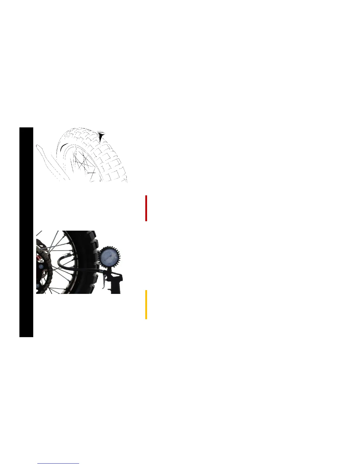 Tire model, condition and air pressure affect the motorcycle behavior. Therefore, tires must be