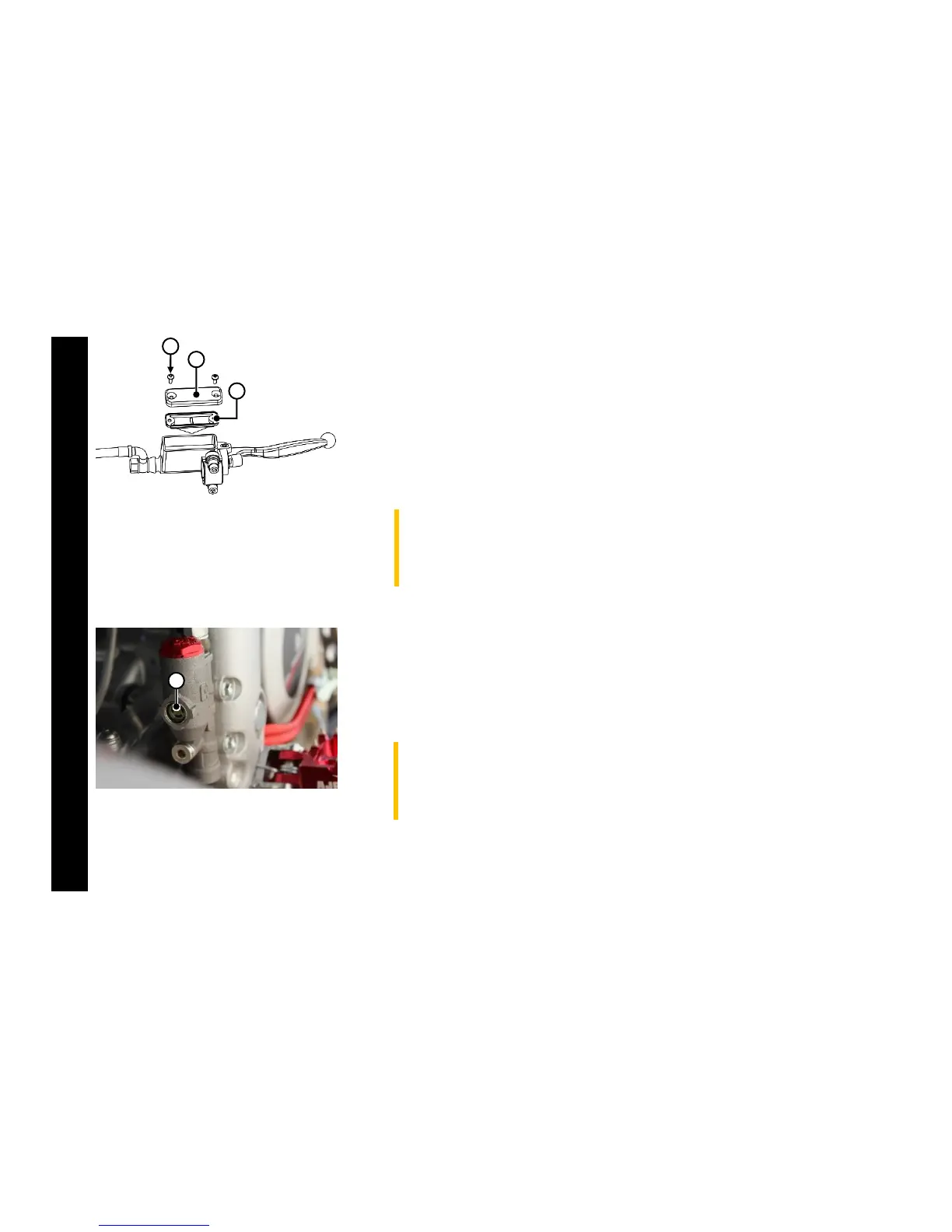 ― Place front brake reservoir in a horizontal position and fill up the reservoir until the