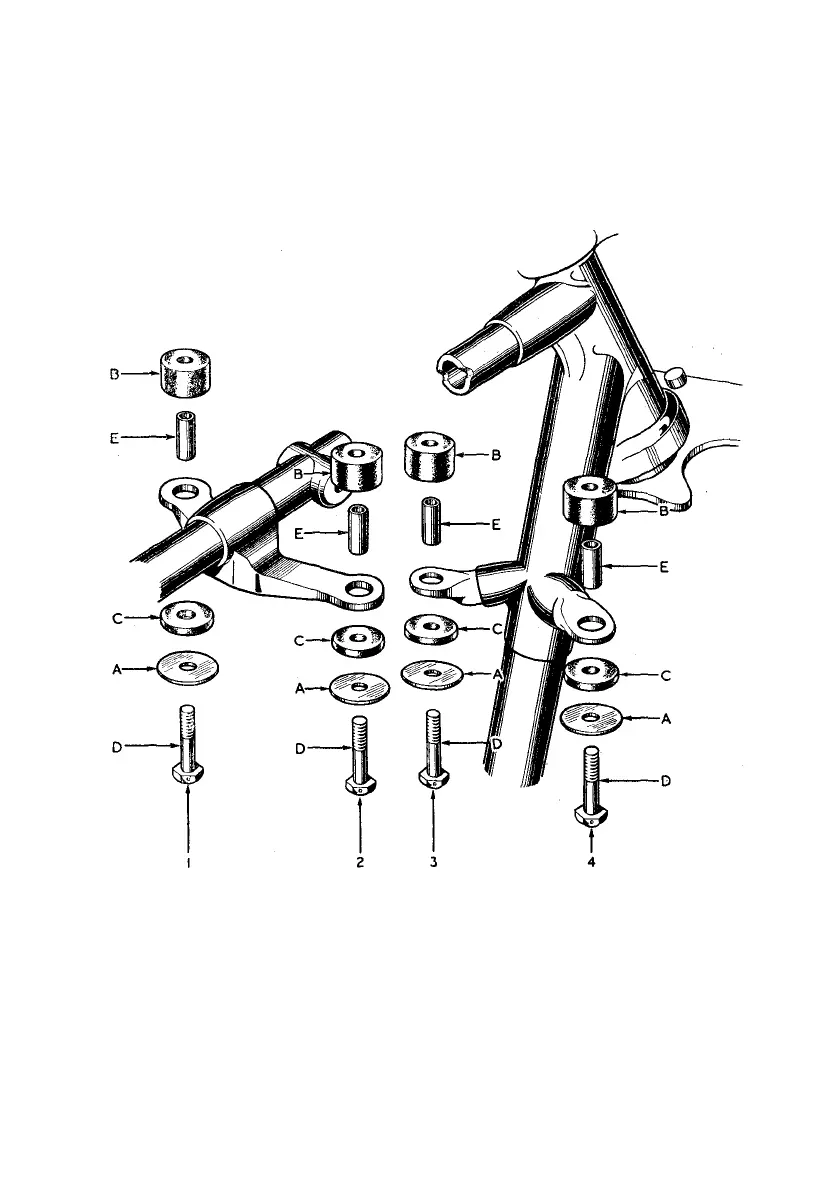 Showing details and order of assembly, of the fuel tank fixing bolts and