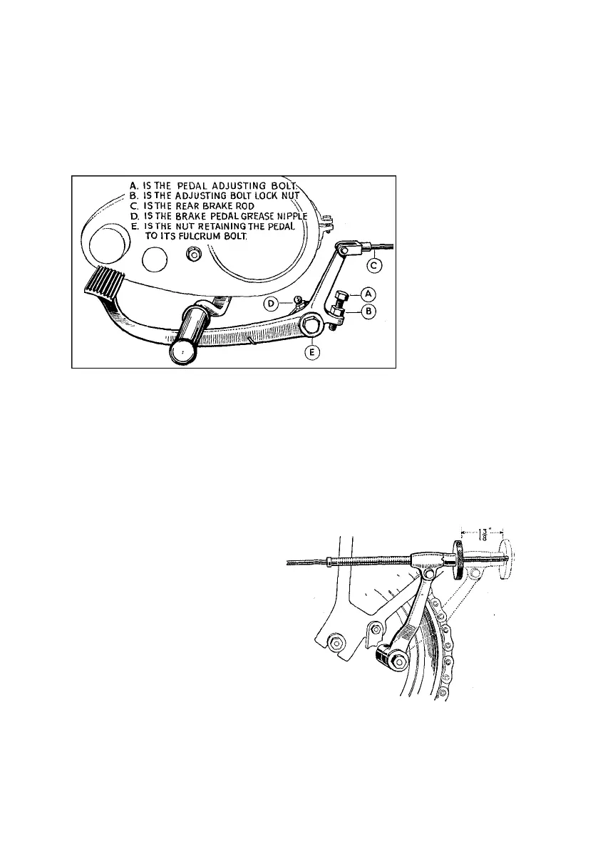 After altering the adjustment of the brake pedal, rear brake adjustment should be checked