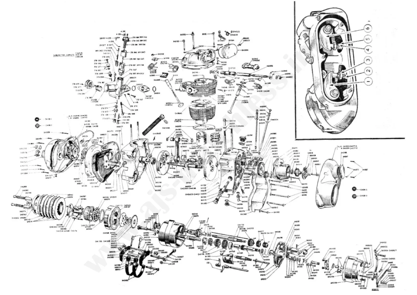 FIG 3 Exploded view of 250 c.c. and 350 c.c. OHV engine