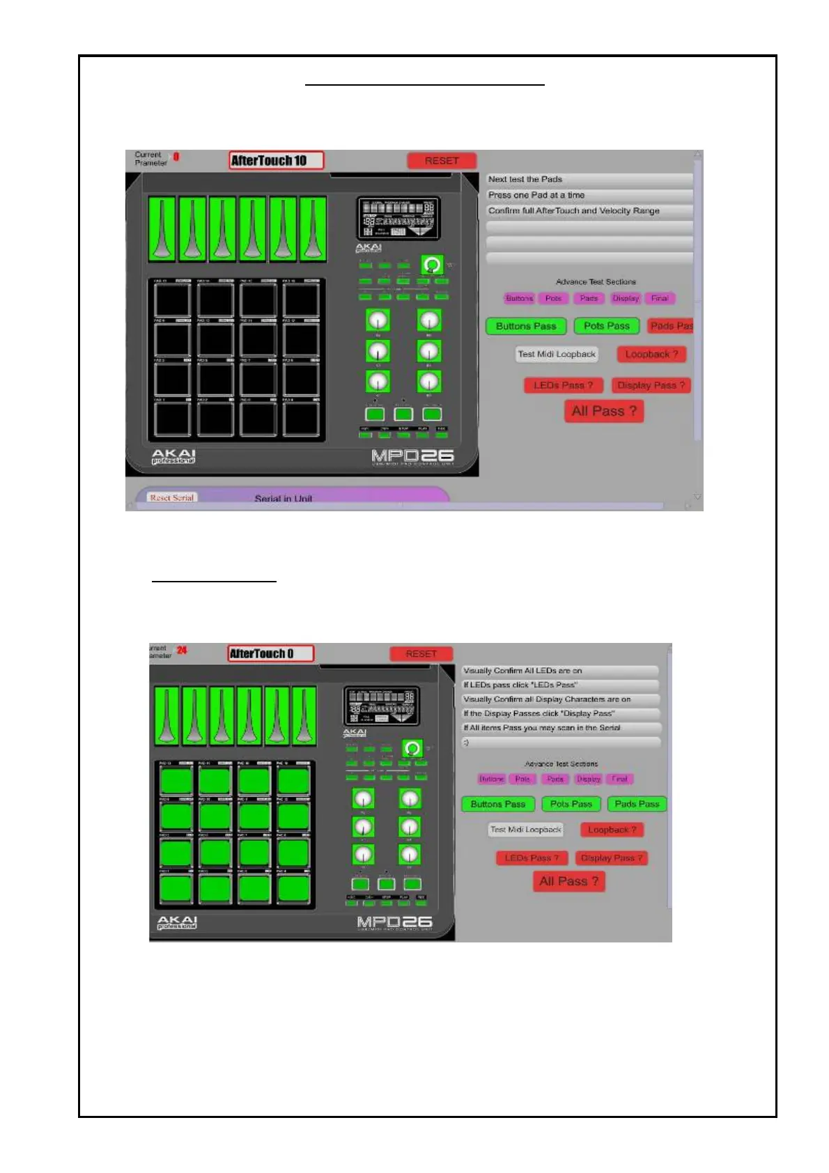 3 Push the Fader up to max getting 127 then down to 0 either way. If it pass it will turn green.