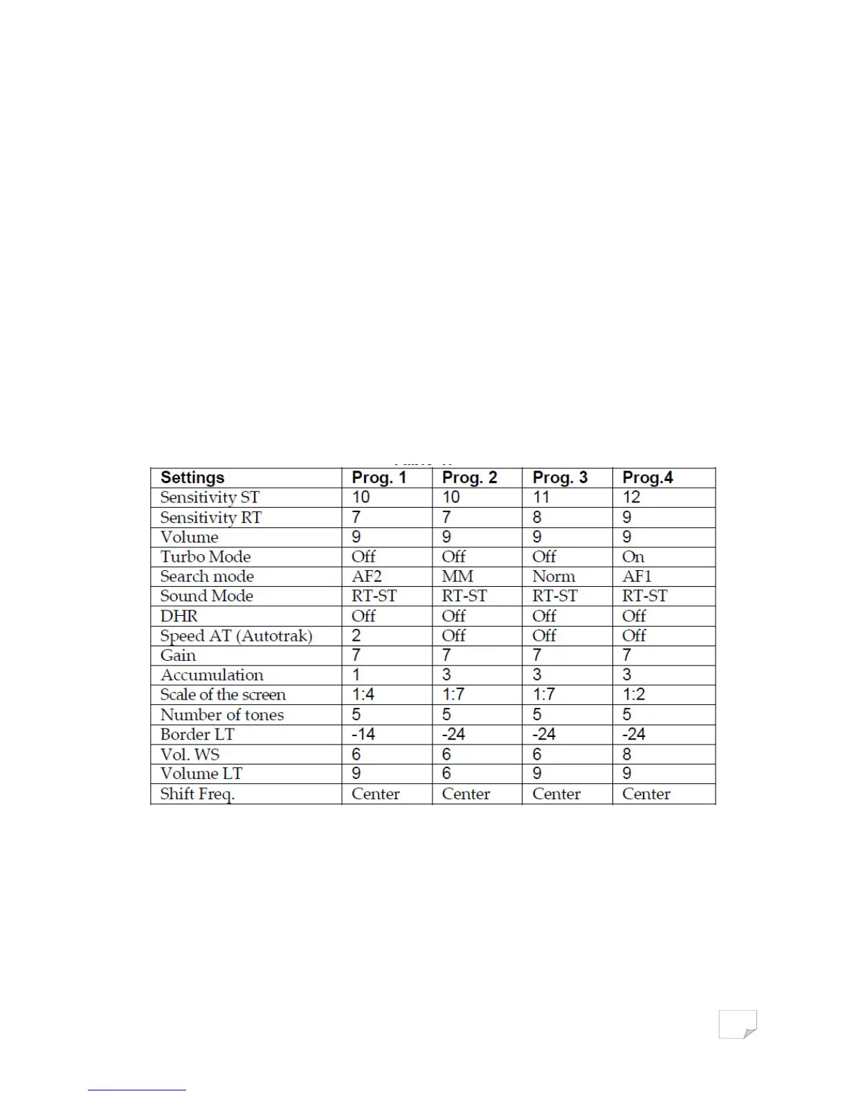 The device provides the ability to edit and save 4 independent search programs. In each program, the