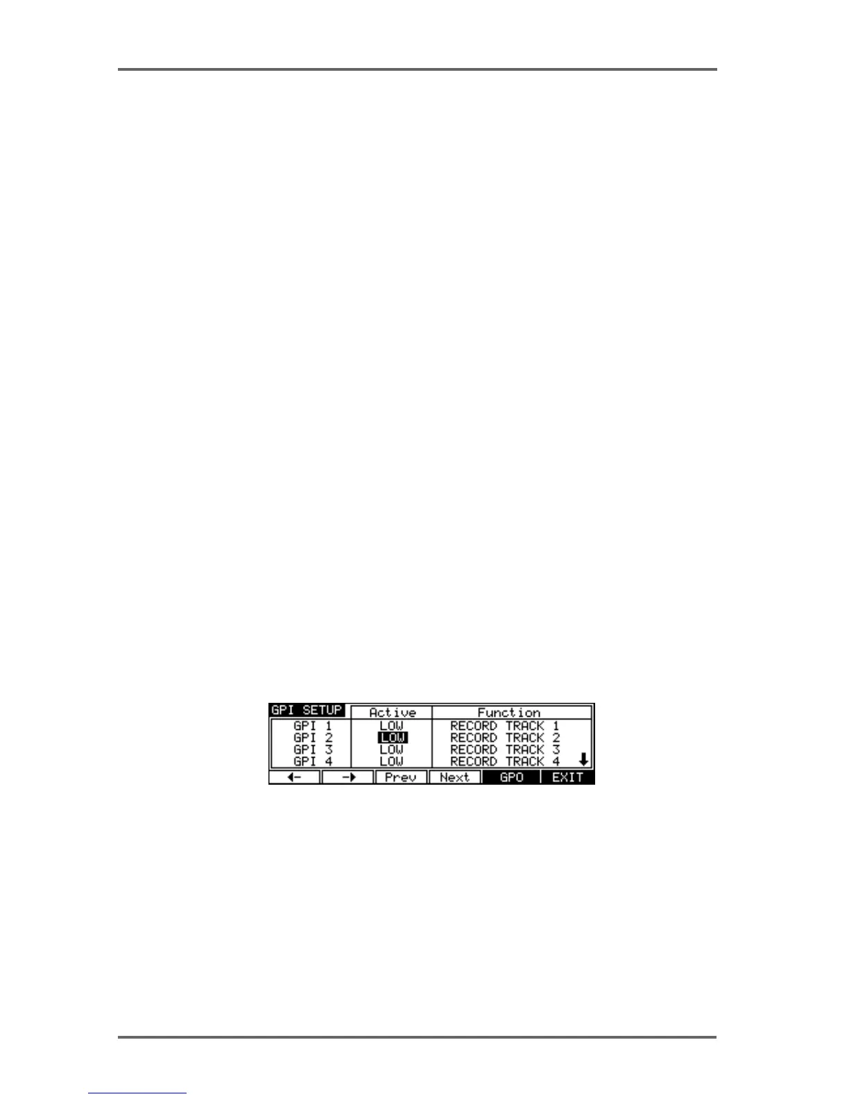 ACTIVE You may select OFF, HIGH and LOW. When OFF, the GPI has no func-