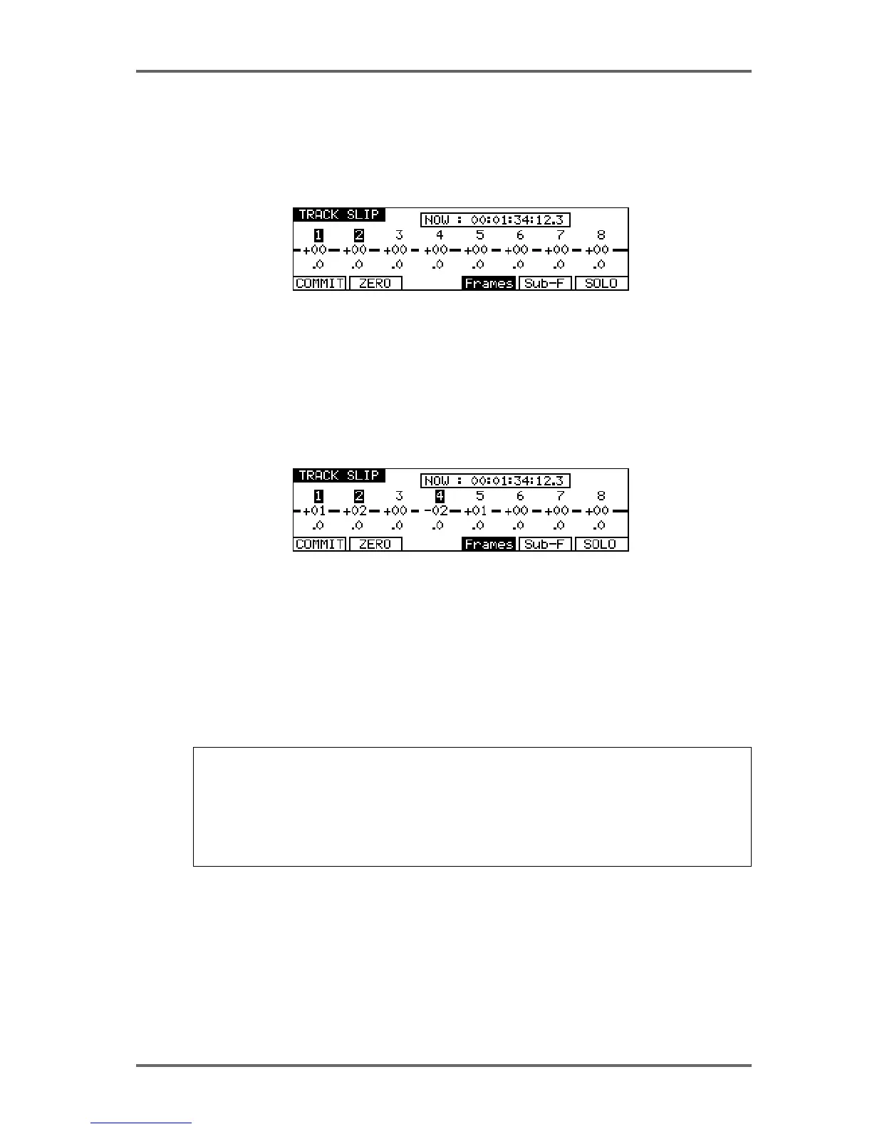 Pressing COMMIT (F1) permanently slips the selected tracks and resets the display to zero.