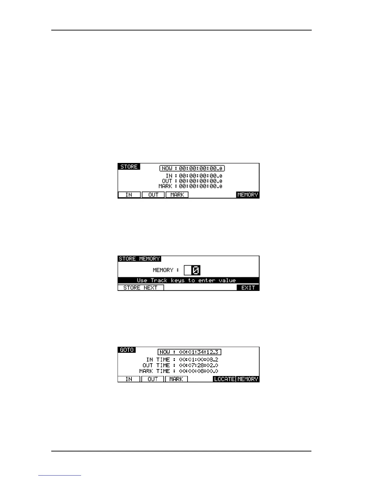Pressing MEMORY (F6) goes to the STORE MEMORY page :