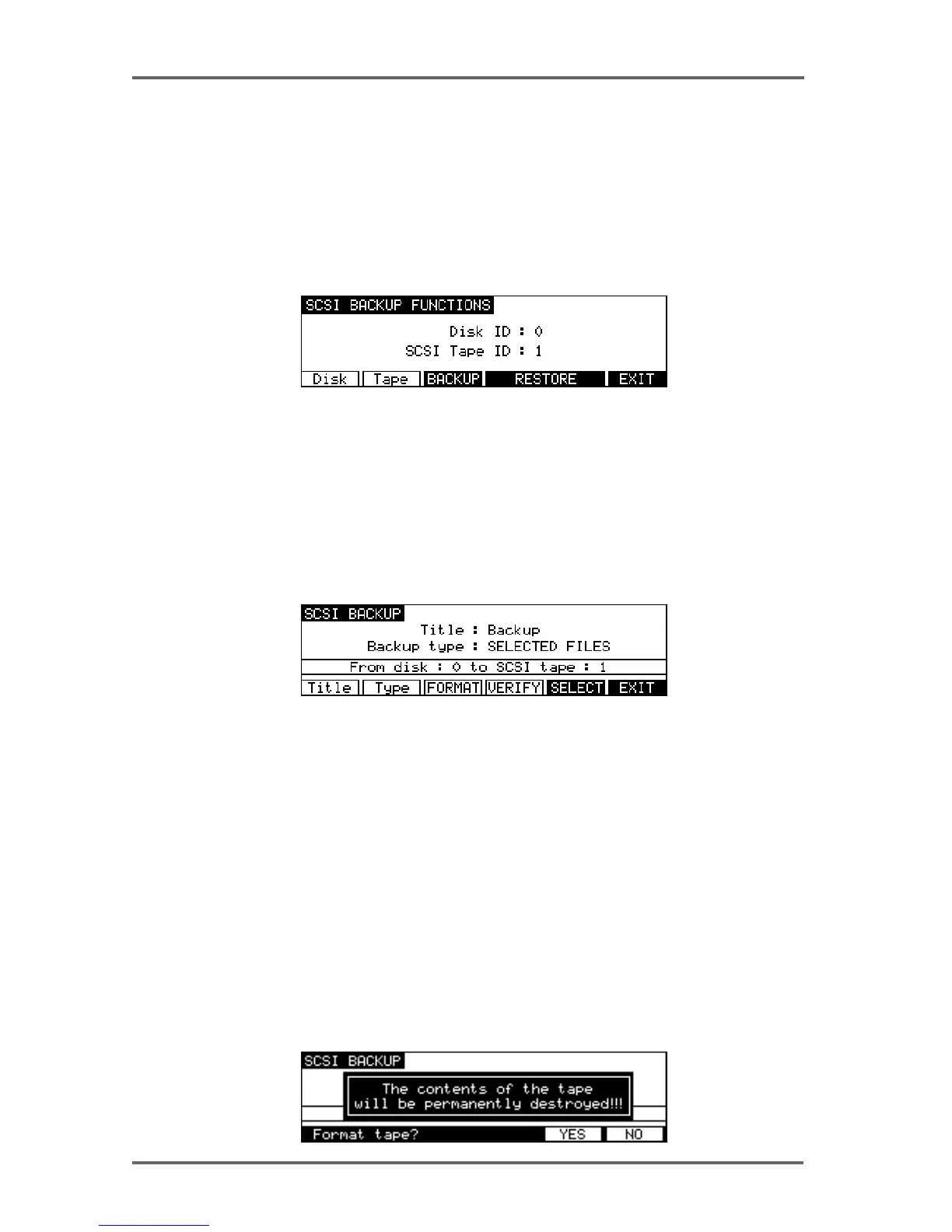 other SCSI device on the buss. Once selected, go to the SCSI BACKUP page and press the