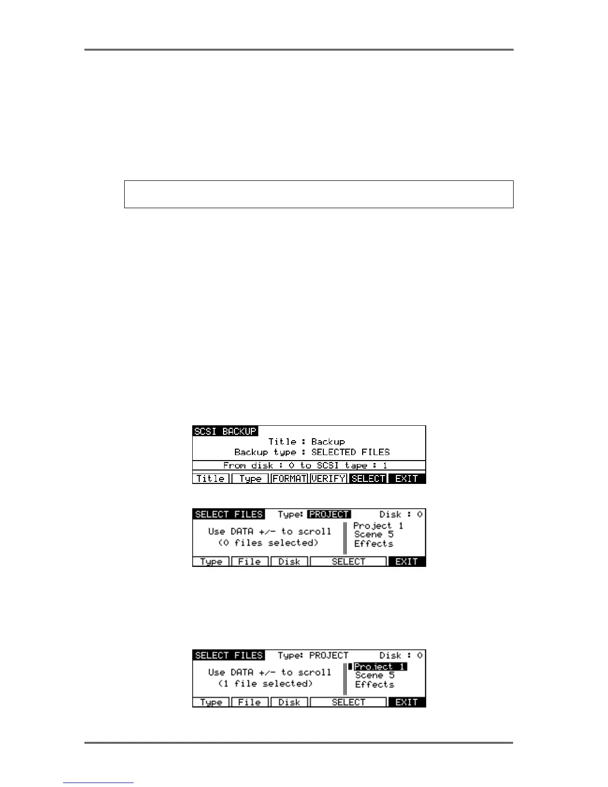 Press the File key (F2) to move the cursor to the list of files. To select the file you wish to backup,