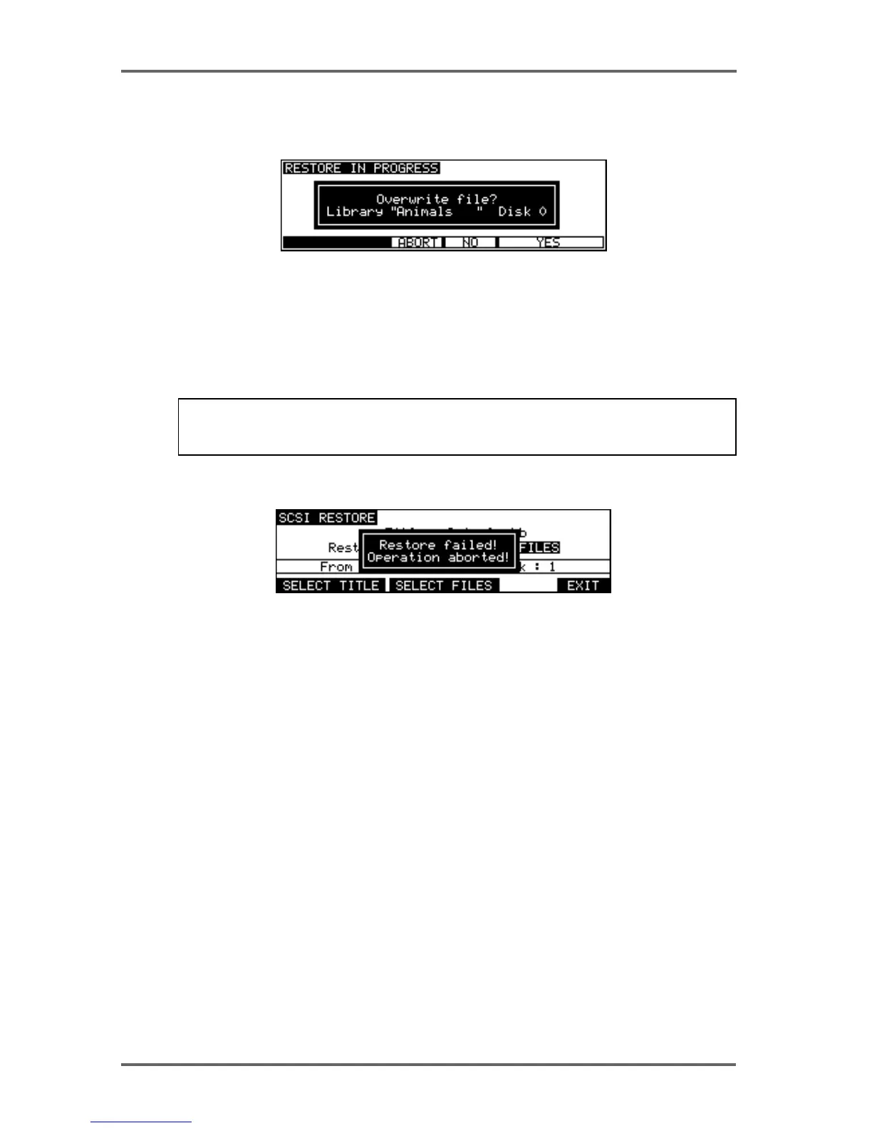 Pressing YES (F5/6) will cause the restore to proceed as normal and as described on the previ-