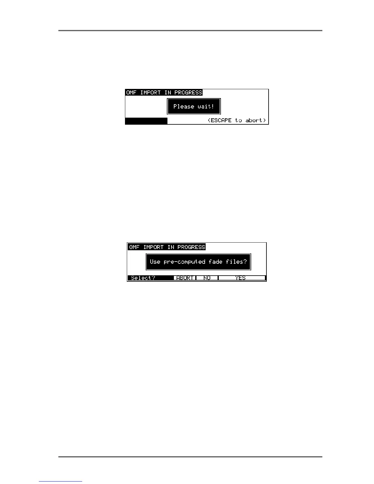 shown on the VGA after an OMF import. This is normal as there are no envelope files on the