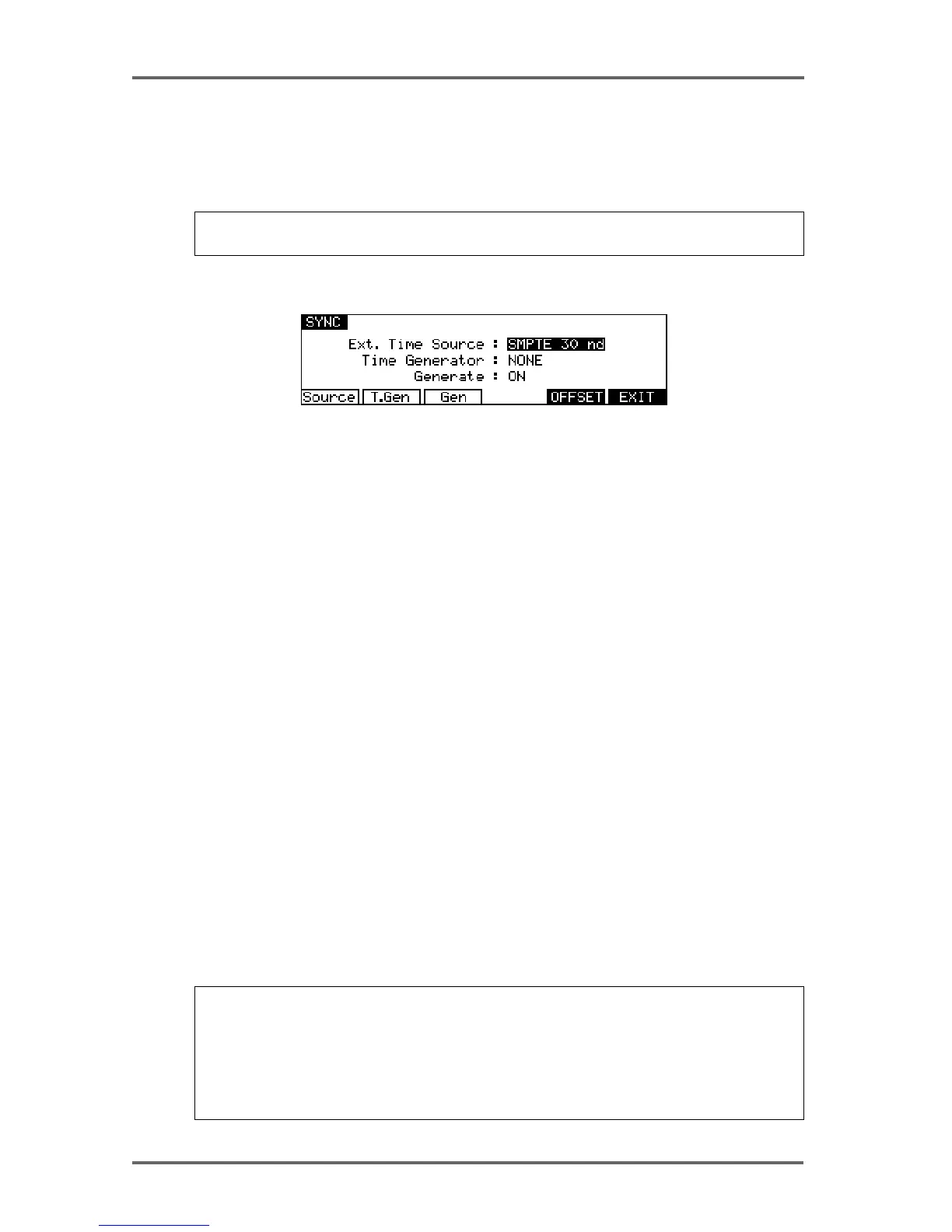 Pressing SYNC (F2) on the main System Settings page takes you to the synchronisation menu:
