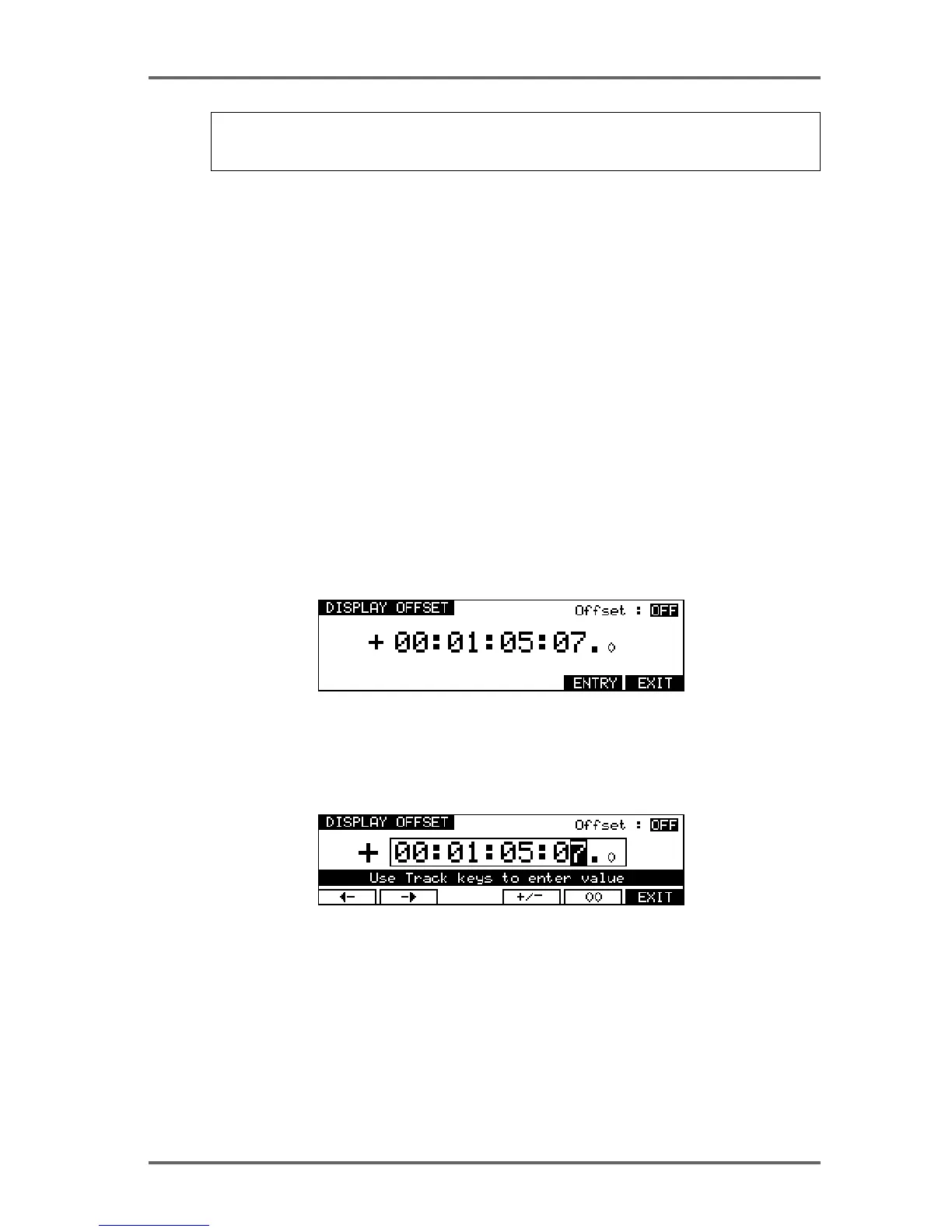 fields. The offset time is then entered using the track keys as a numeric keypad or the current