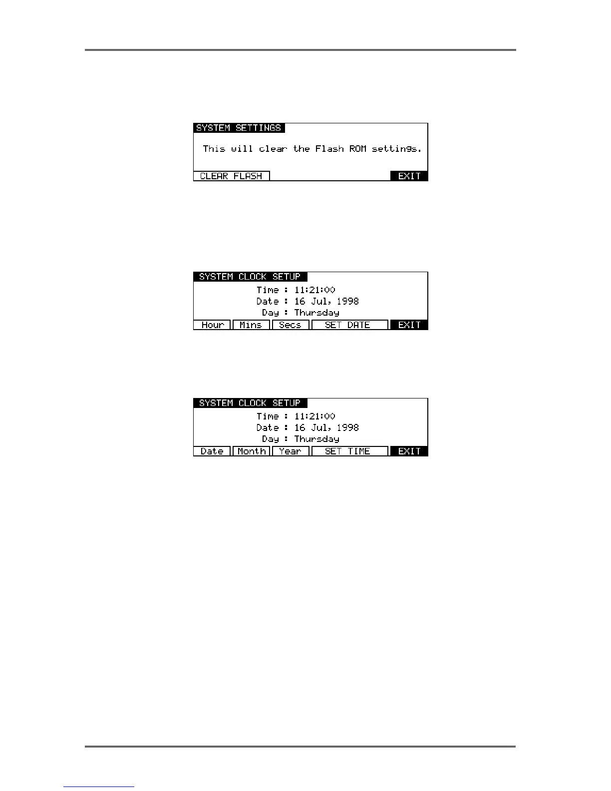 Pressing CLEAR (F4) on the third System Settings page takes you to a page which allows you