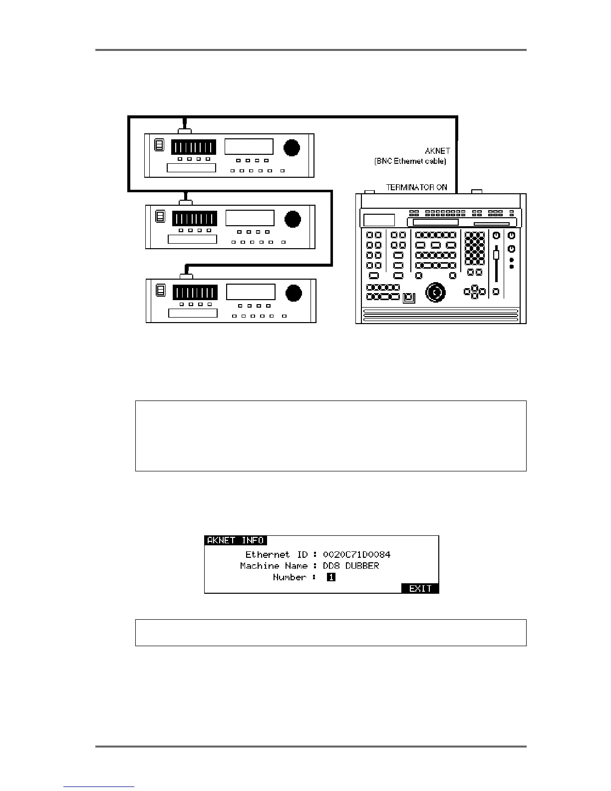 The units are chained together by the AKNET BNC connector on each machine using standard