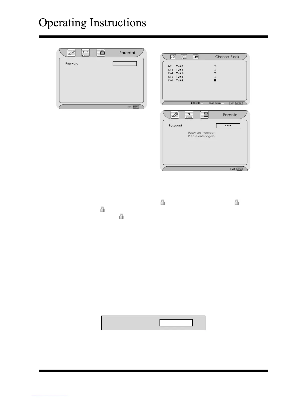 - If you want to watch the “lock” channels, you can enter the password and