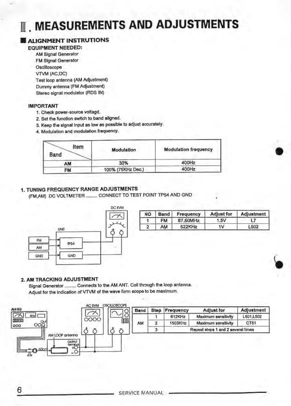 1. TUNING FREQUENCY RANGE ADJUSTMENTS