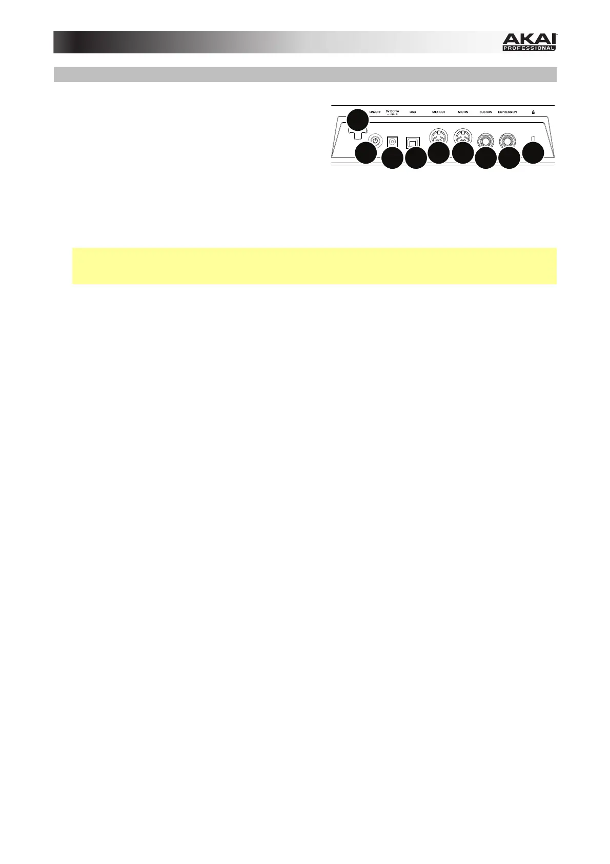 6. Entrada MIDI: Utilice un cable MIDI estándar de cinco patillas para conectar esta entrada MIDI a la