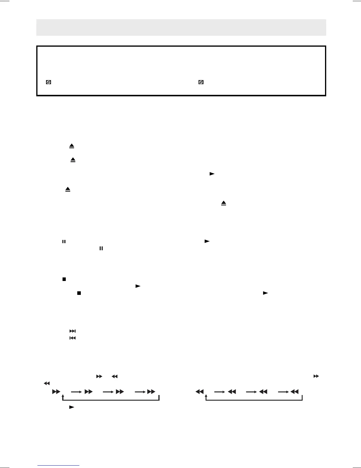 • The DVD player mutes sound and subtitles during reverse and forward scan of DVDs.