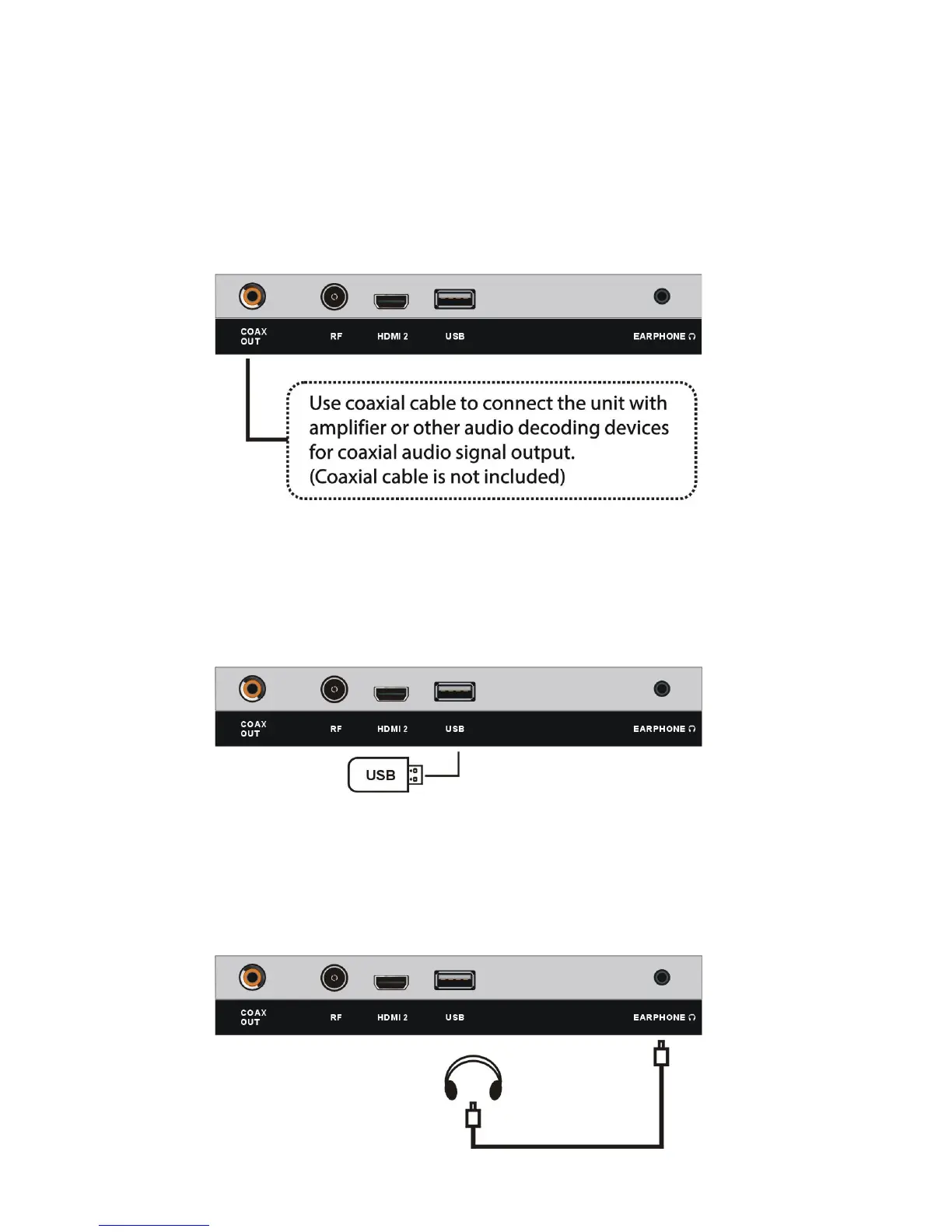 Connect portable USB storage device for multimedia files playback. Select USB input source using