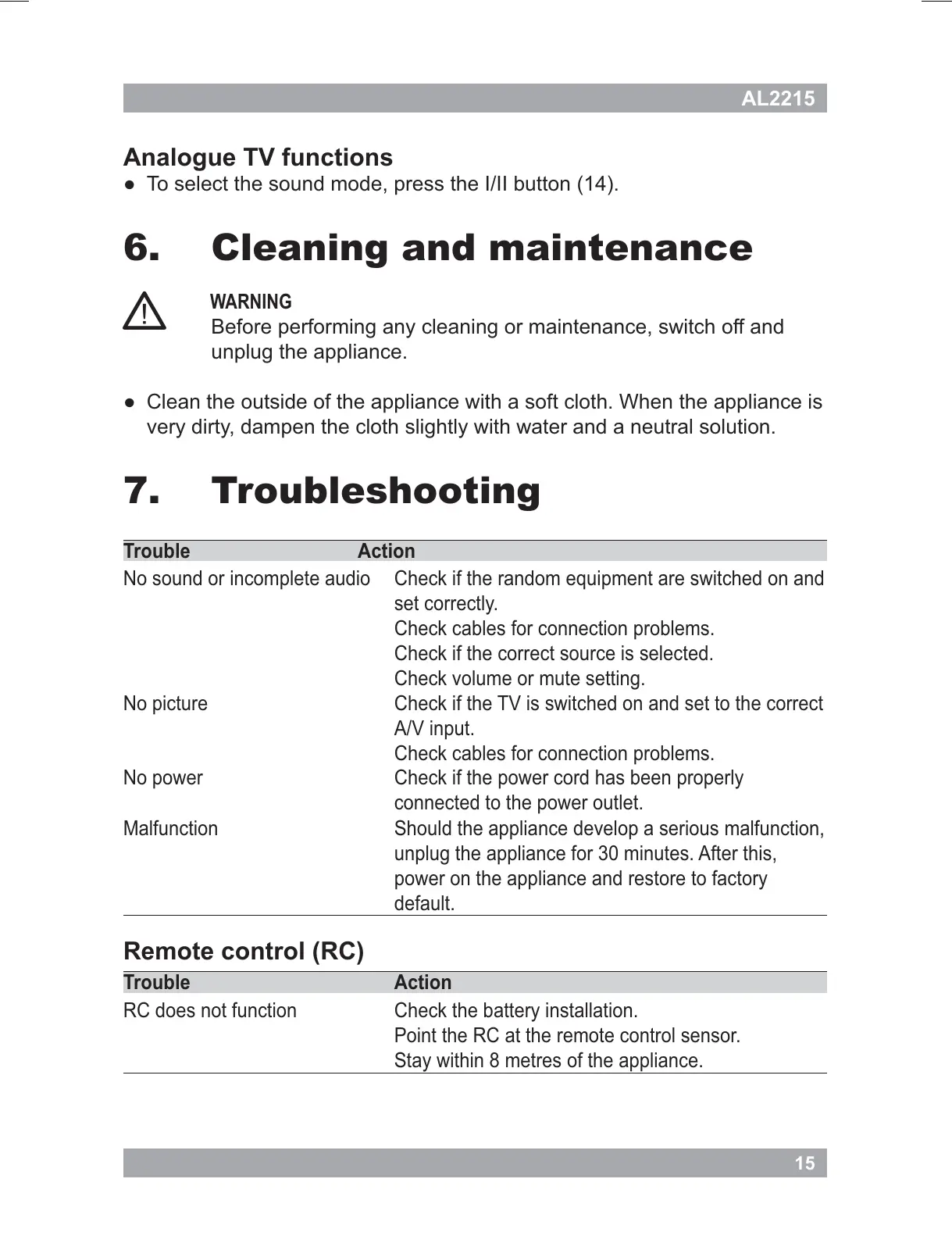 Cleaning and maintenance6.
