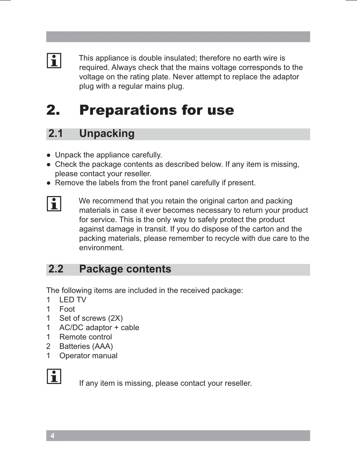 Package contents2.2