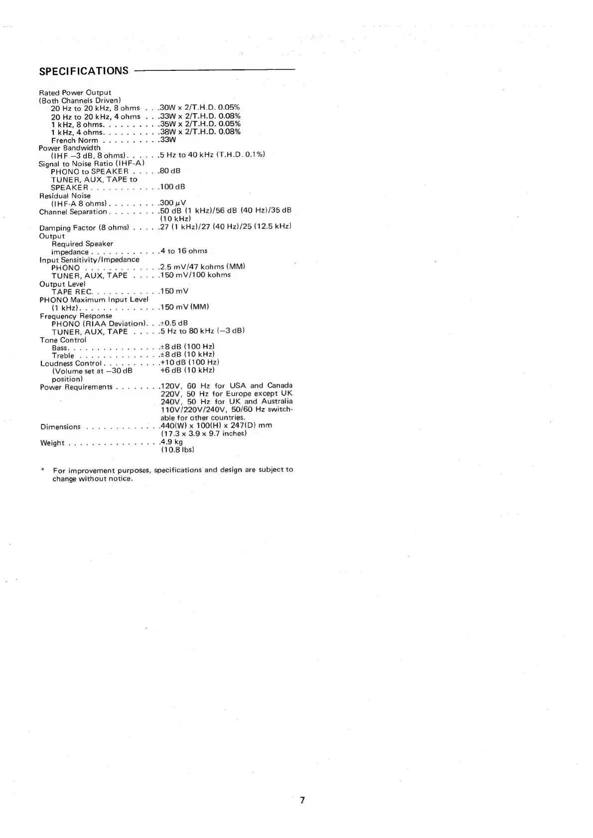 SPECIFICATIONS