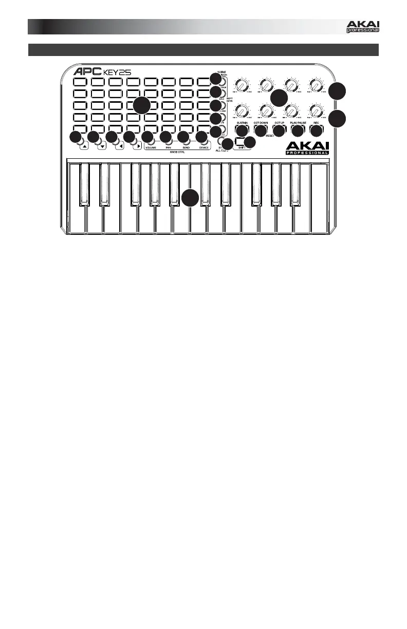 • Auswahl-Modus: Die Clip-Stopp-Tasten wählen die entsprechenden Tracks aus.