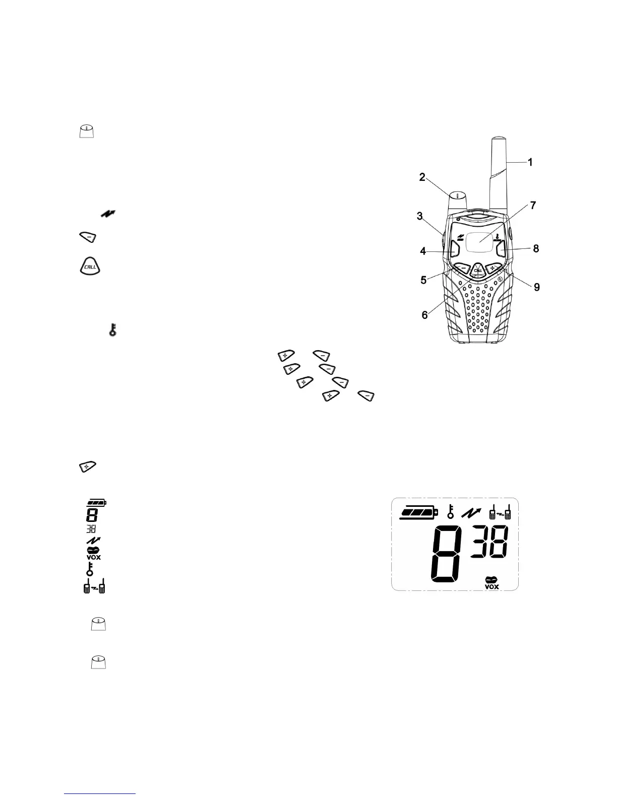 • Push to decreases the channel / CTCSS Code / select VOX level and call tone.