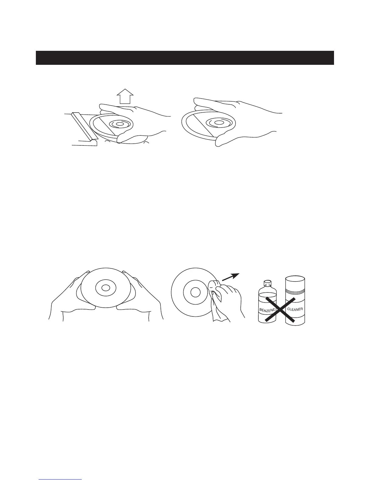 • Clean the disc periodically with a soft, lint-free, dry cloth. Never use detergents or abrasive