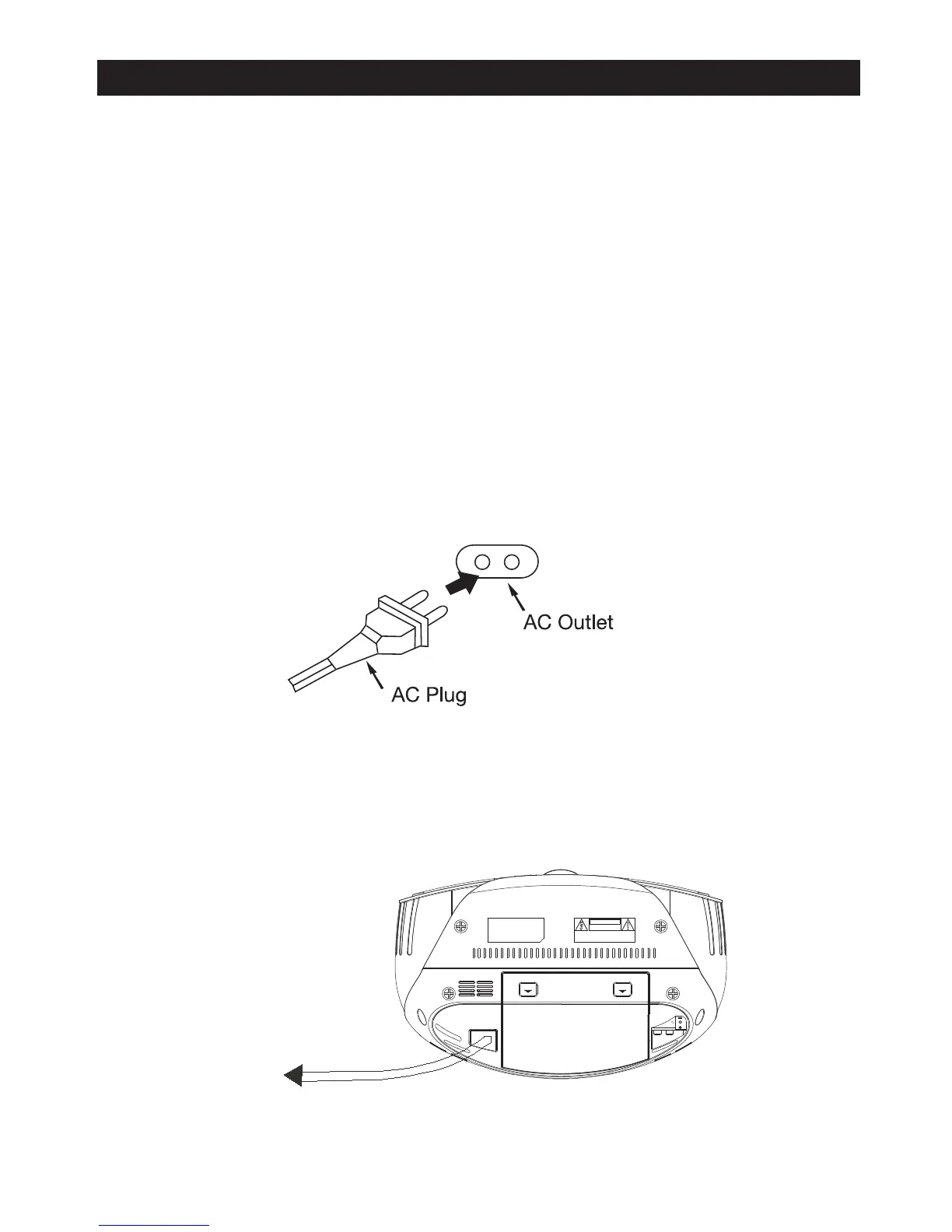 2. Insert the smaller end of the cord into the AC Cord Socket on the back cabinet.