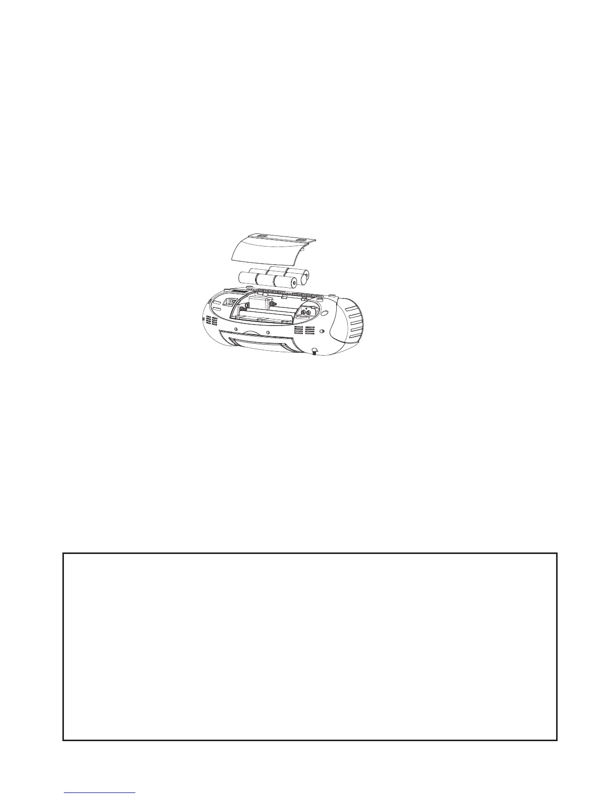 • Playing CD’s at higher volume levels increases the battery drain and shortens the battery life.