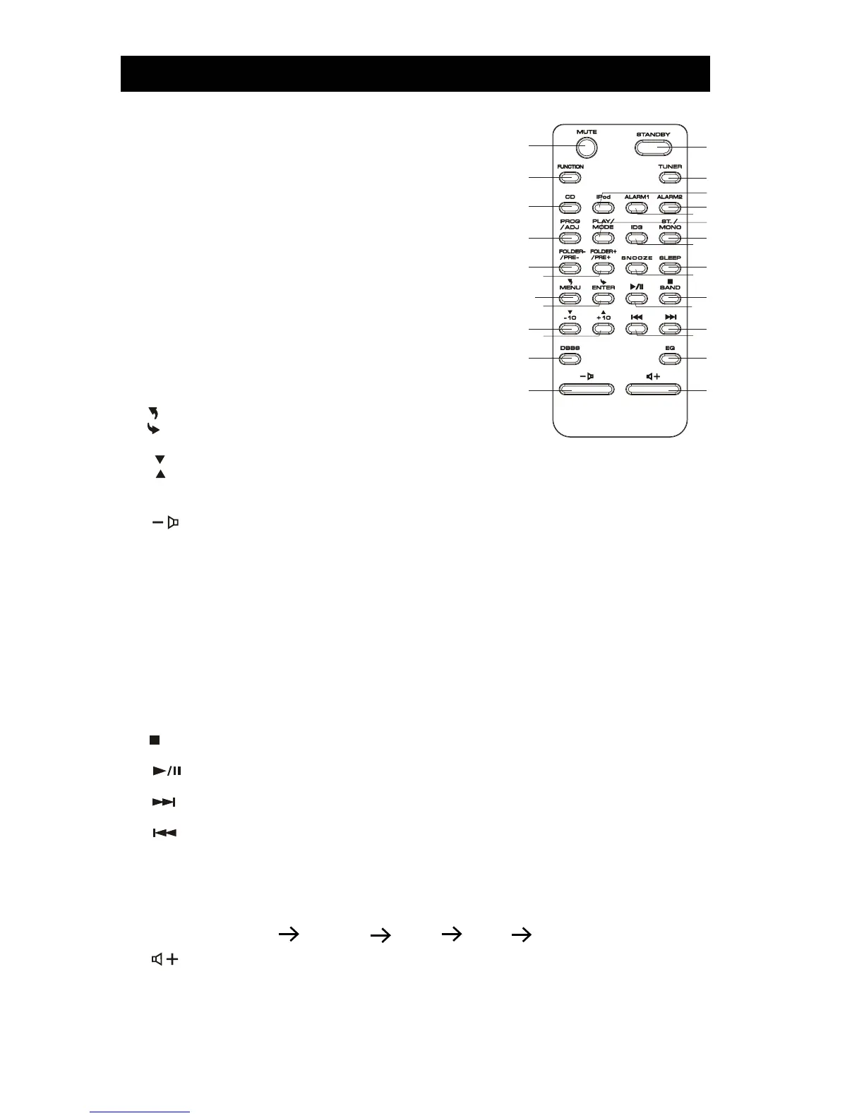 10. /-10 Selects the MP3 track skip in 10 each press.(-10)