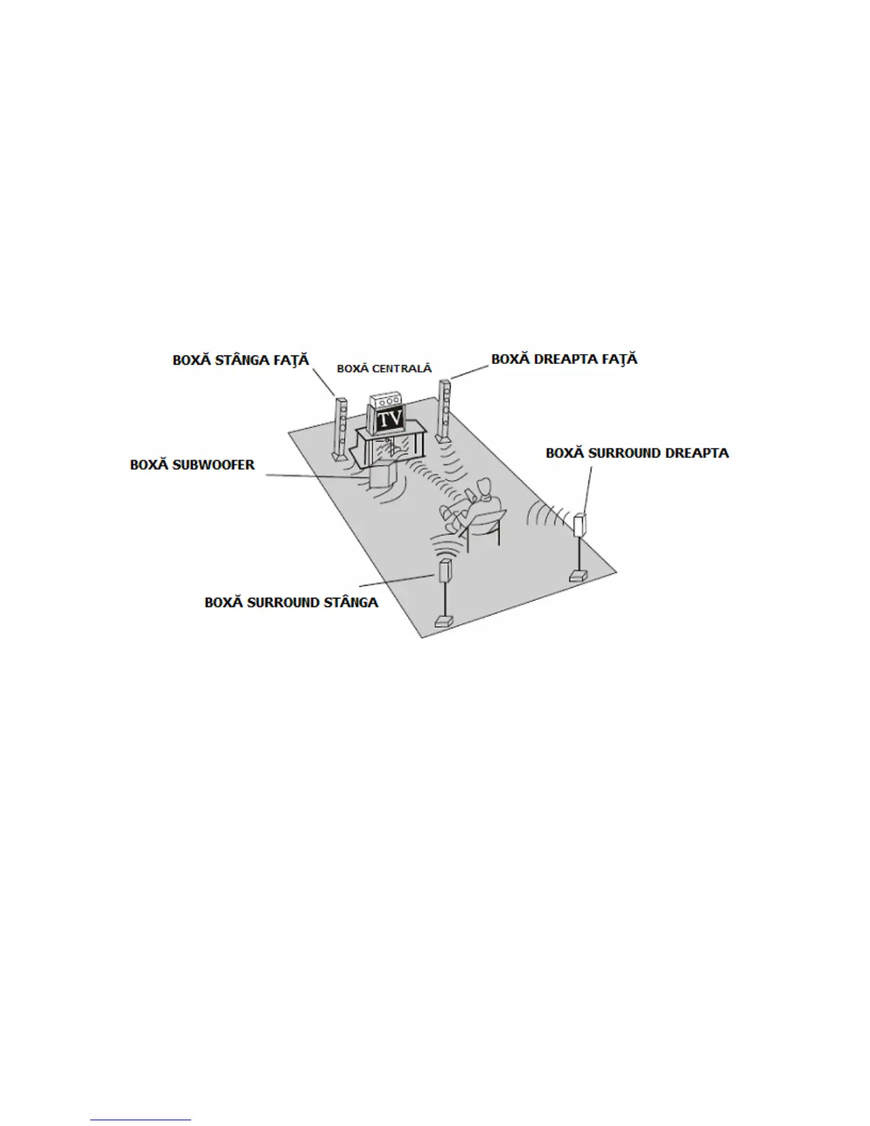 Schema aşezării aparatului într-o cameră şi conectarea boxelor